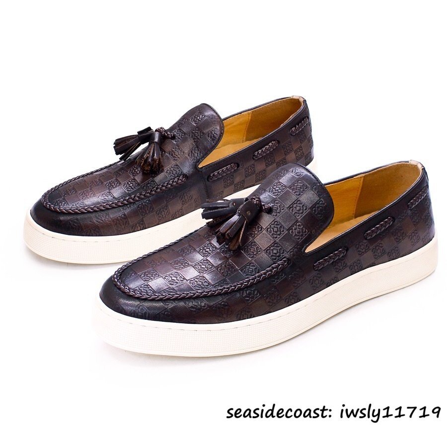 定価8万◆タッセルローファー スリッポン メンズ 職人手作り ビジネスシューズ レザーシューズ 紳士靴 高級牛革 革靴 本革 珈琲色 25.5cm