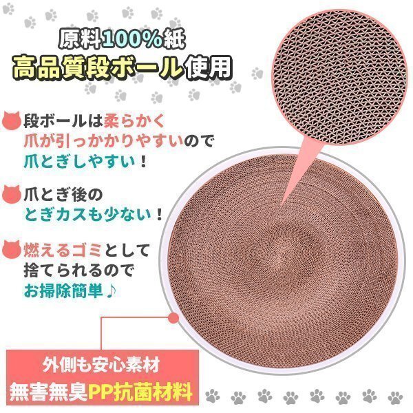 原料は100%紙、品質の良いダンボールを使用しています、爪とぎ後のとぎカスも少ないです。