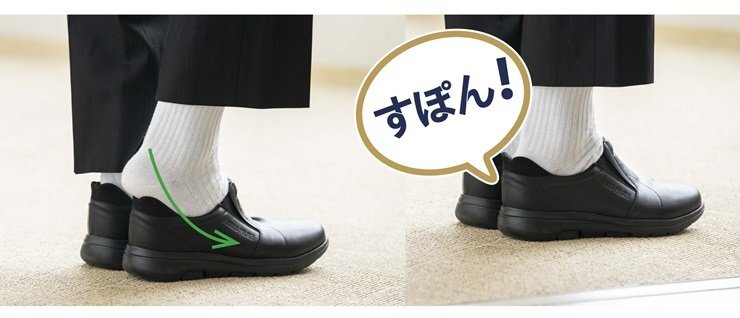 | 「Slide Fit」は、特許を取得した、ユニークなカウンター機能とデザインが特徴です。 靴のかかとに強度のある月型芯が入っており足を入れたときに、靴の踵がつぶれません。 さらに上端に左右に開いているカーブ形状のV字構造とソフトな裏クッション材により、足を素早くスムーズに靴の中に誘導することができます。 軽量で快適な履き心地と、ハンズフリーの利便性を兼ね備えてたモデルとなっています。 幅広4E・防水設計(4cm×6時間) ※完全防水ではございません。 ※商品写真はできる限り実物の色に近づけるよう徹底しておりますが、 お使いのモニター設定、お部屋の照明等により実際の商品と色味が異なる場合がございます。予めご了承ください。 | |