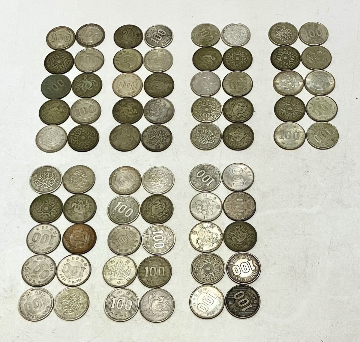 100円銀貨 70枚おまとめ 総重量約334.1g 古銭 稲穂 鳳凰 東京オリンピック 百円銀貨