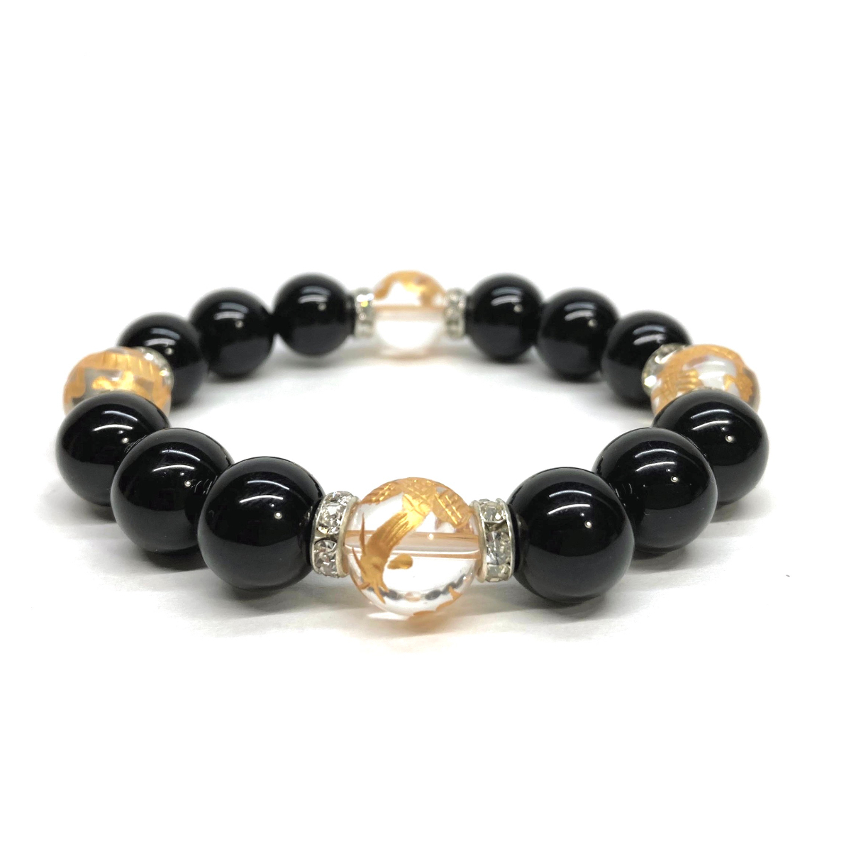 こちらは、四神獣金彫水晶とモリオンを組み合わせたパワーストーンブレスレットです。四神獣は、中国の伝説で4つの方向(東西南北)を守護する神聖な神。四神獣、厄災から身を守り、多くの運気を呼び込むと言われております。石大きさは程よくインパクトのある12mm玉で内周 約17cmです。 数に限りがございますので気になる方はお早めにどうぞ。