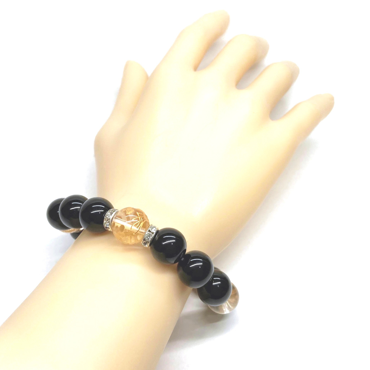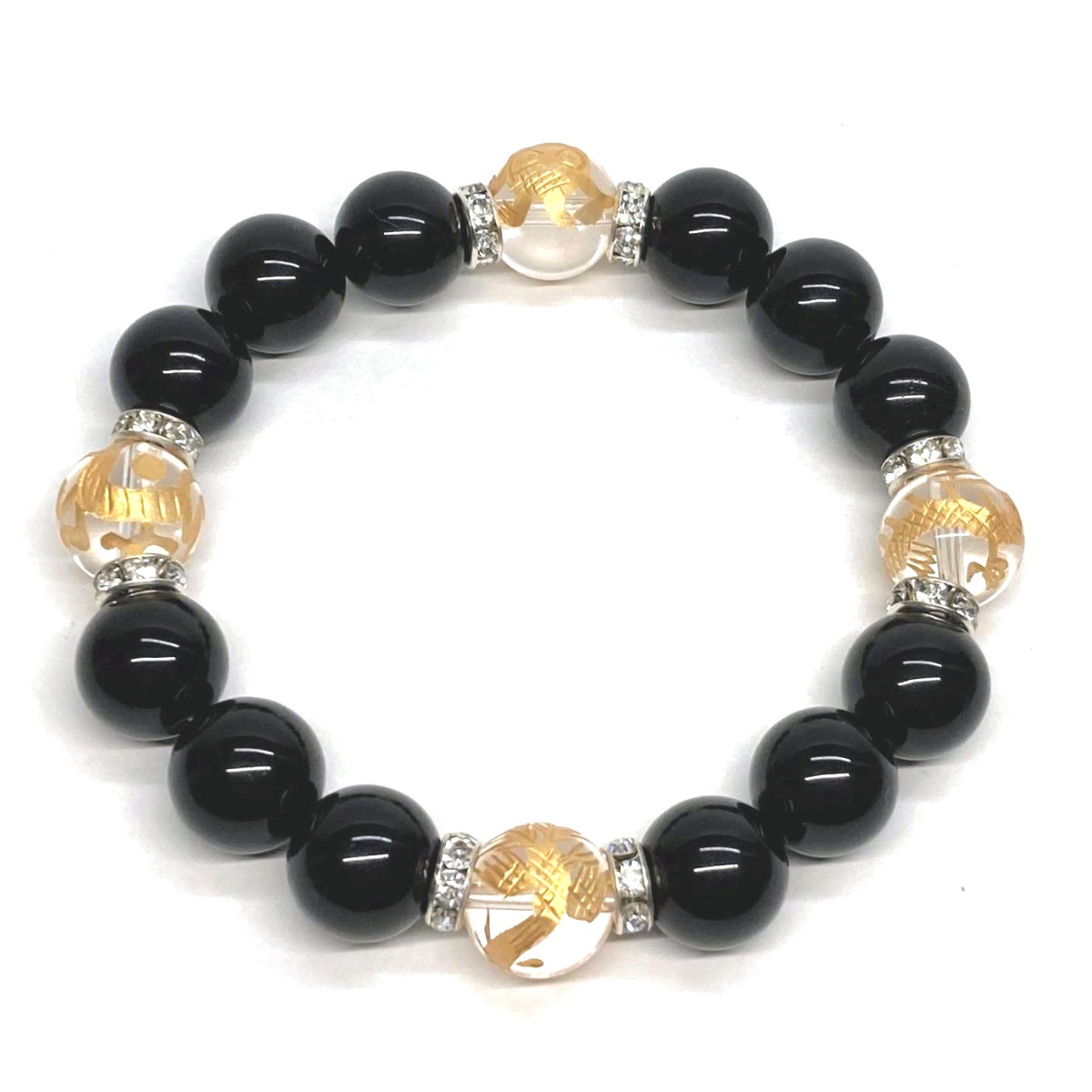四神獣金彫水晶×モリオン 12mm パワーストーン ブレスレット天然石 青龍 白虎 玄武 朱雀 運気上昇 金運 健康運 お守り 四神相応 S