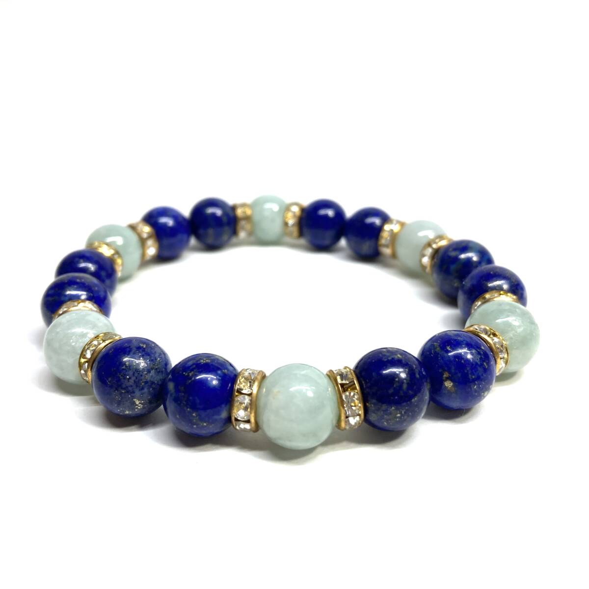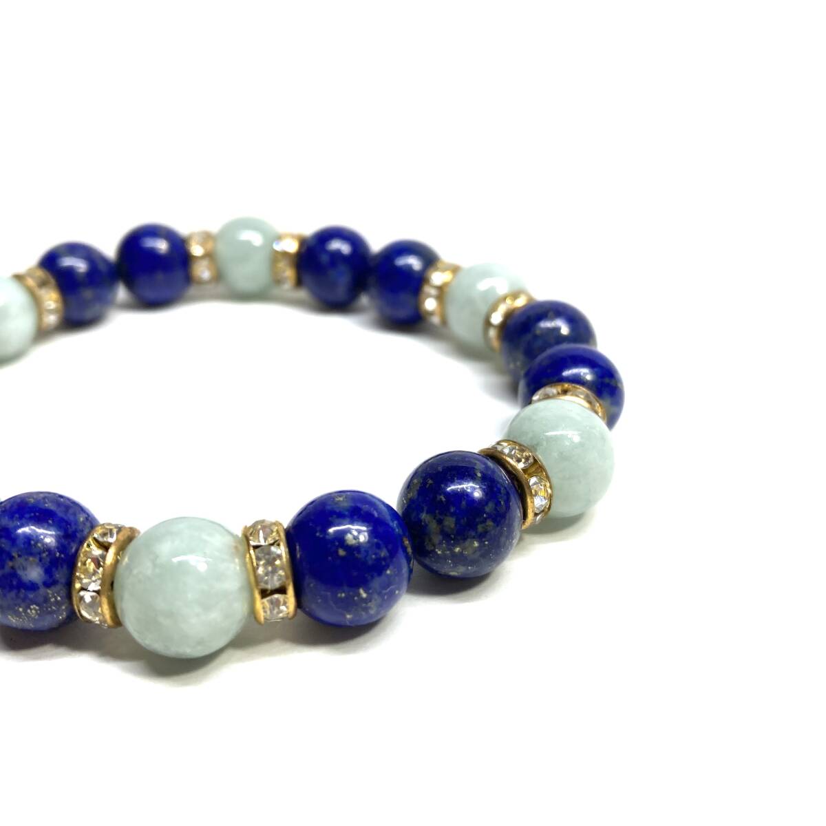 ラピスラズリ&ビルマ翡翠 パワーストーン ブレスレット 天然石ブレス (ゴールド) 10mm メンズ・レディース 仕事運 人間関係 ☆
