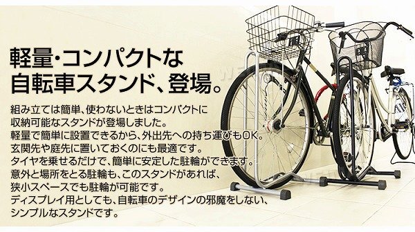 L字型自転車スタンドです。 20インチの子供用の自転車からマウンテンバイクなどのタイヤの太い車種、 ロードバイクなどタイヤの細い車種まで幅広く対応!! とても軽量・簡単設置可能なので、店舗の駐輪スペース、庭先や玄関先などでも最適♪ スタンド使わない時は分解して収納可能です。 ■ 商品仕様 サイズ(約):高さ750×幅380×奥行466mm 重量(約):1.7kg 適応サイズ:20~29インチ 材質:スチール ※写真と実物は多少異なる場合がございます。あらかじめご了承下さい。 |