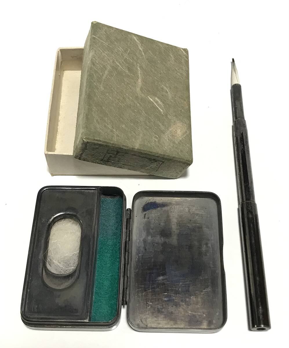 ・華石 書道具 小型 携帯 懐中 金属製ケース入り 外箱付き になります。