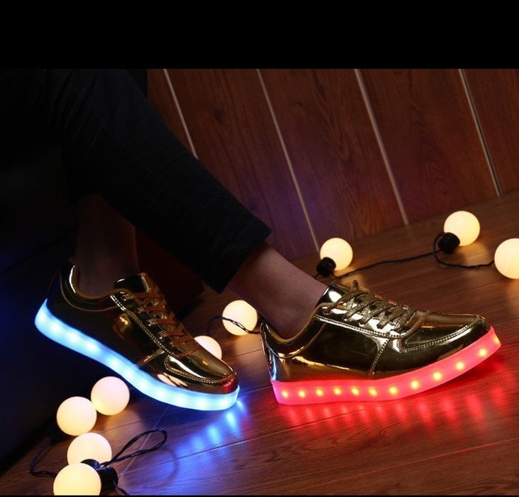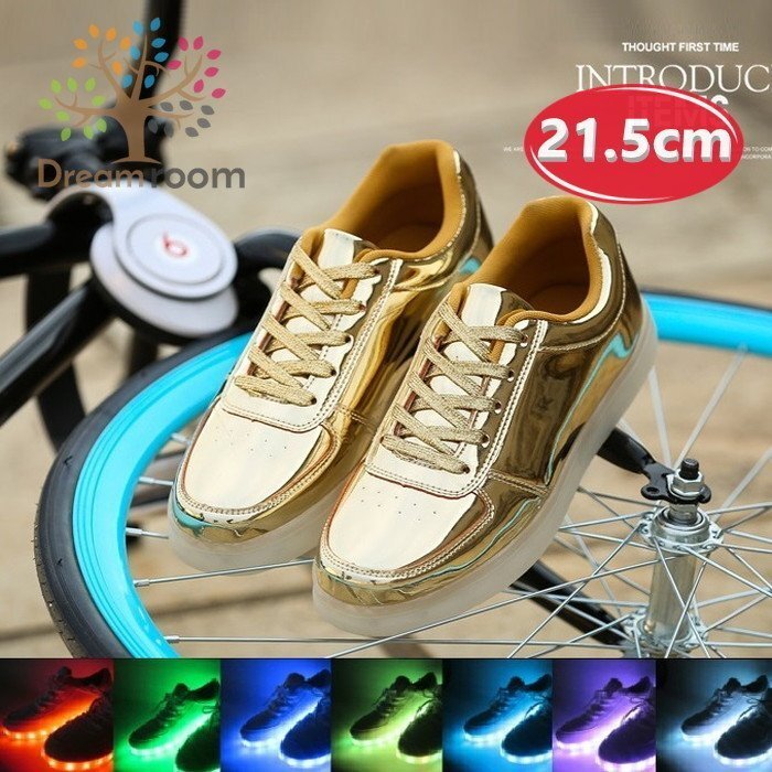 1スタ☆7色に光る☆LED ライトアップスニーカー メタリック ダンス 【ゴールド 21.5cm】夜間 交通事故防止 反射材 ジョギング 自転車