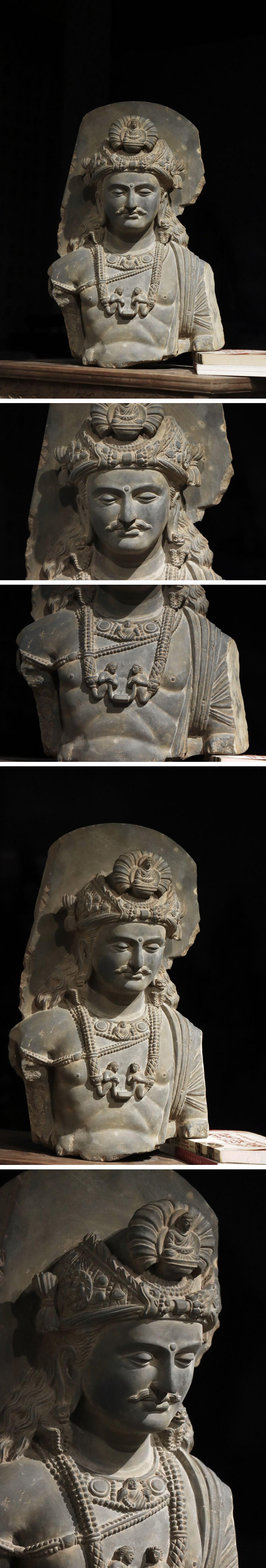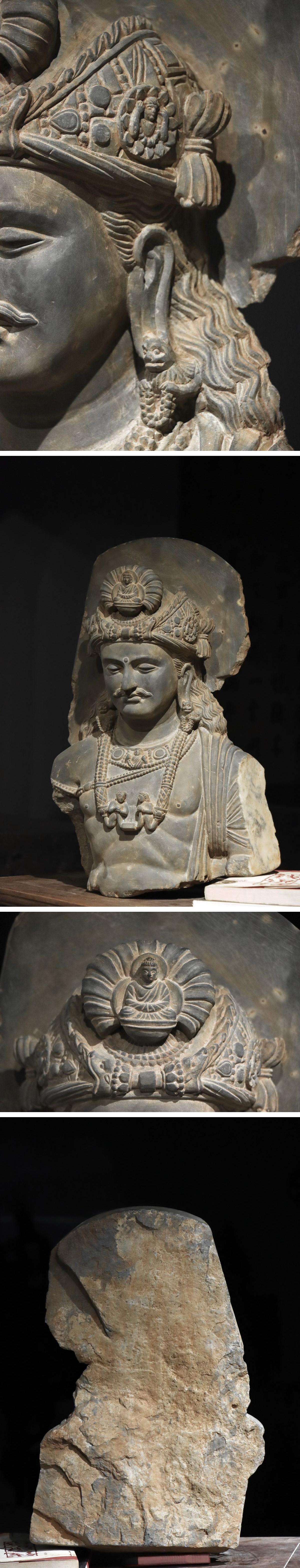 【清】関西某オークション購入 中国・時代物 灰色片岩 釈迦王子ガンダーラ造像 極細工 古置物 古擺件 中国古美術7L10-24