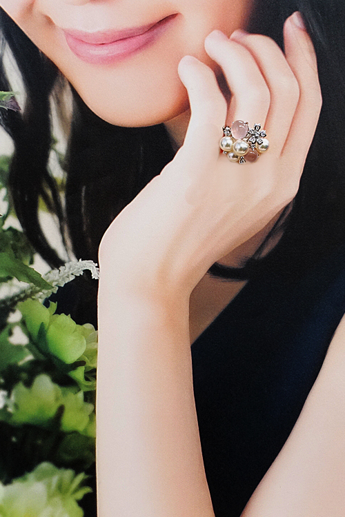 | ■コメント | タサキの、艶やかで瑞々しく、それでいてキラキラしている春の麗らかな満開のサクラのような華やかなリングです 大きめのトップですが、淡いトーンでまとめられているため見ためよりも圧迫感が少なく、可憐で優しい雰囲気を添えてくれます |
