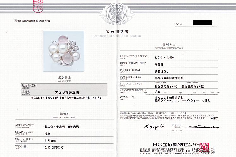 | ■付属品 | 日米宝石鑑別センター鑑別書 |