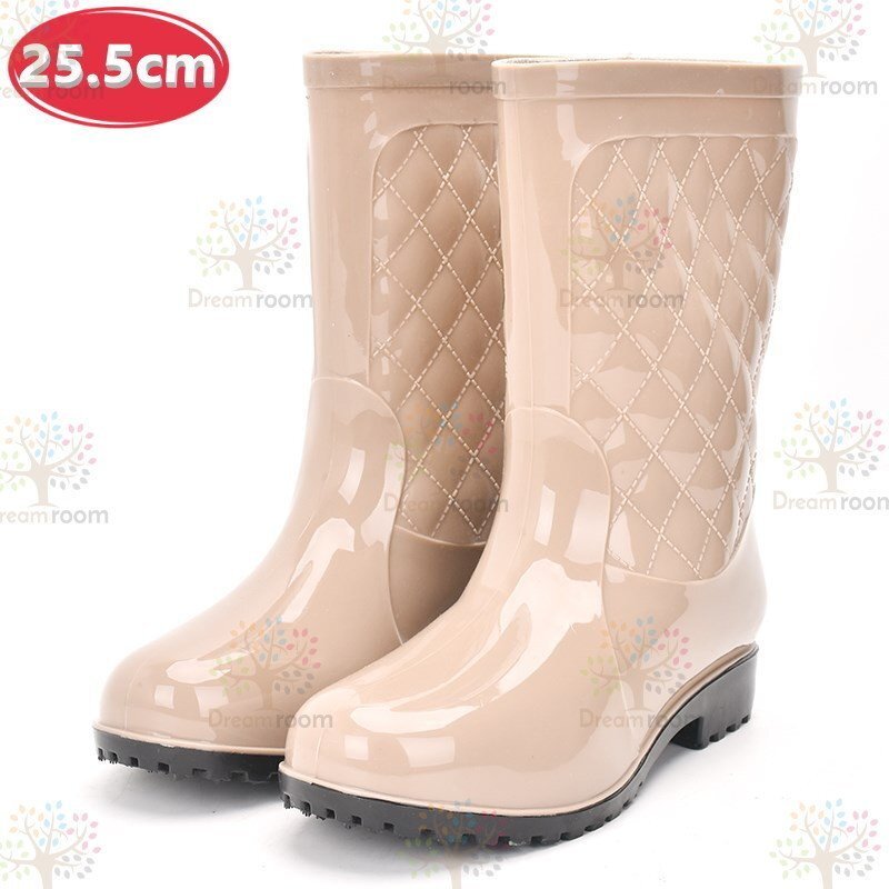 お洒落 キルティング レインブーツ 【ベージュ 25.5cm】 長靴 レディース 女の子 梅雨 K-310