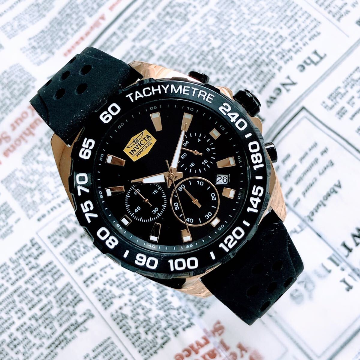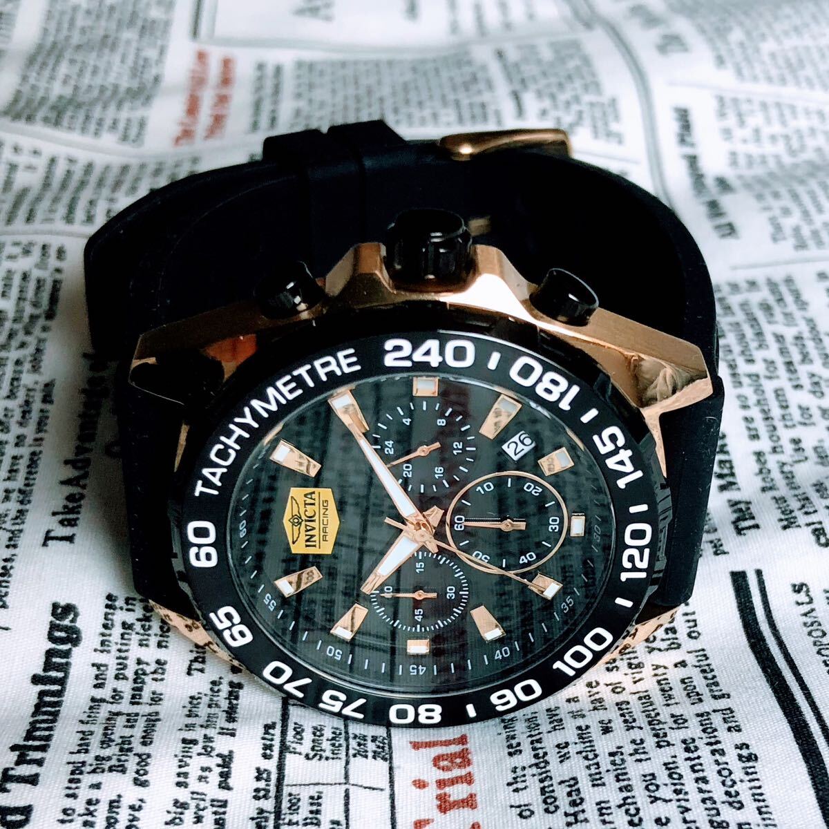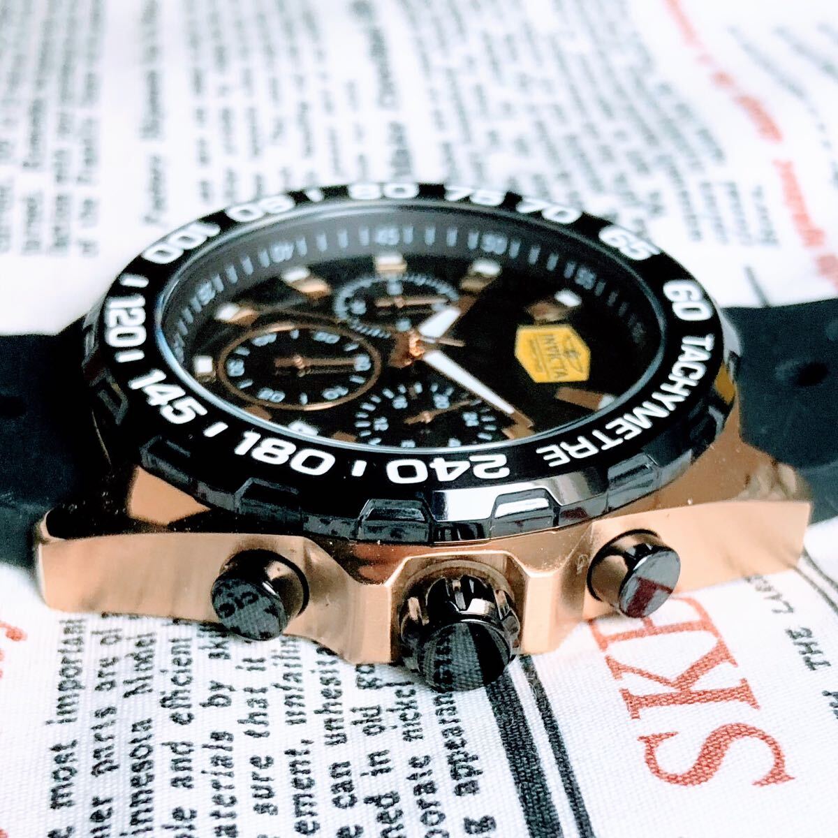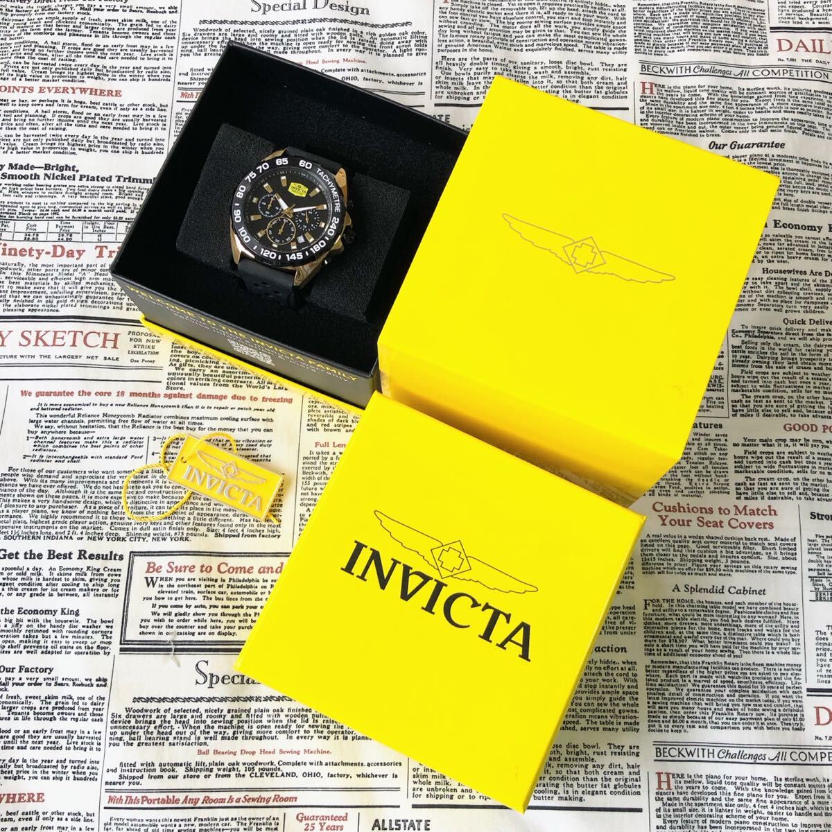 #3838【高級感お洒落】メンズ 腕時計 インビクタ Invicta クォーツ Quartz 動作良好 ブラックダイヤル インヴィクタ クロノグラフ 黒文字盤