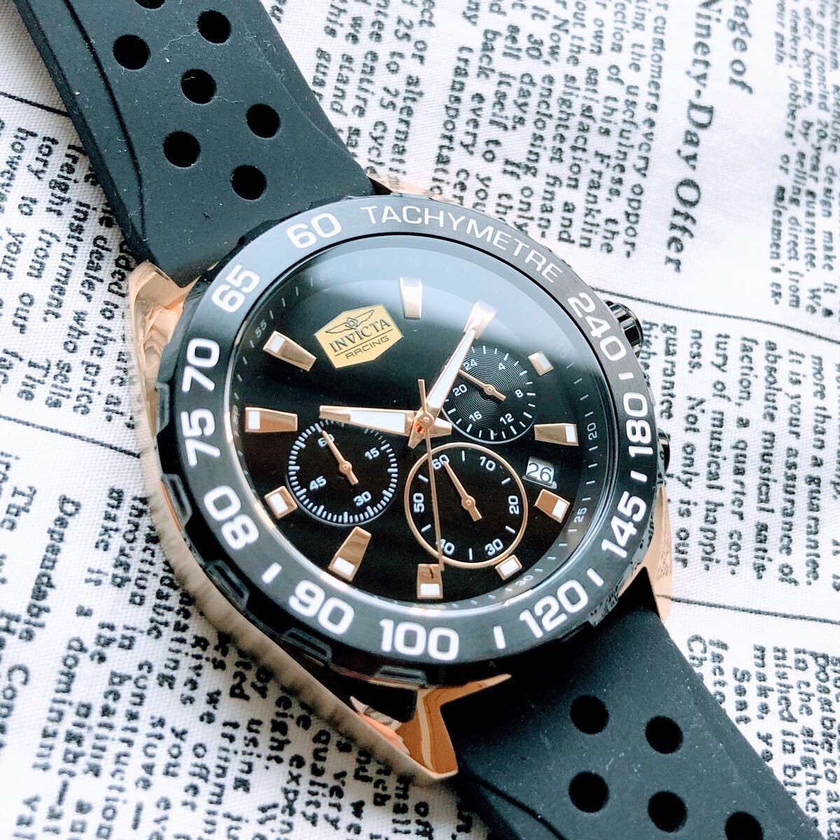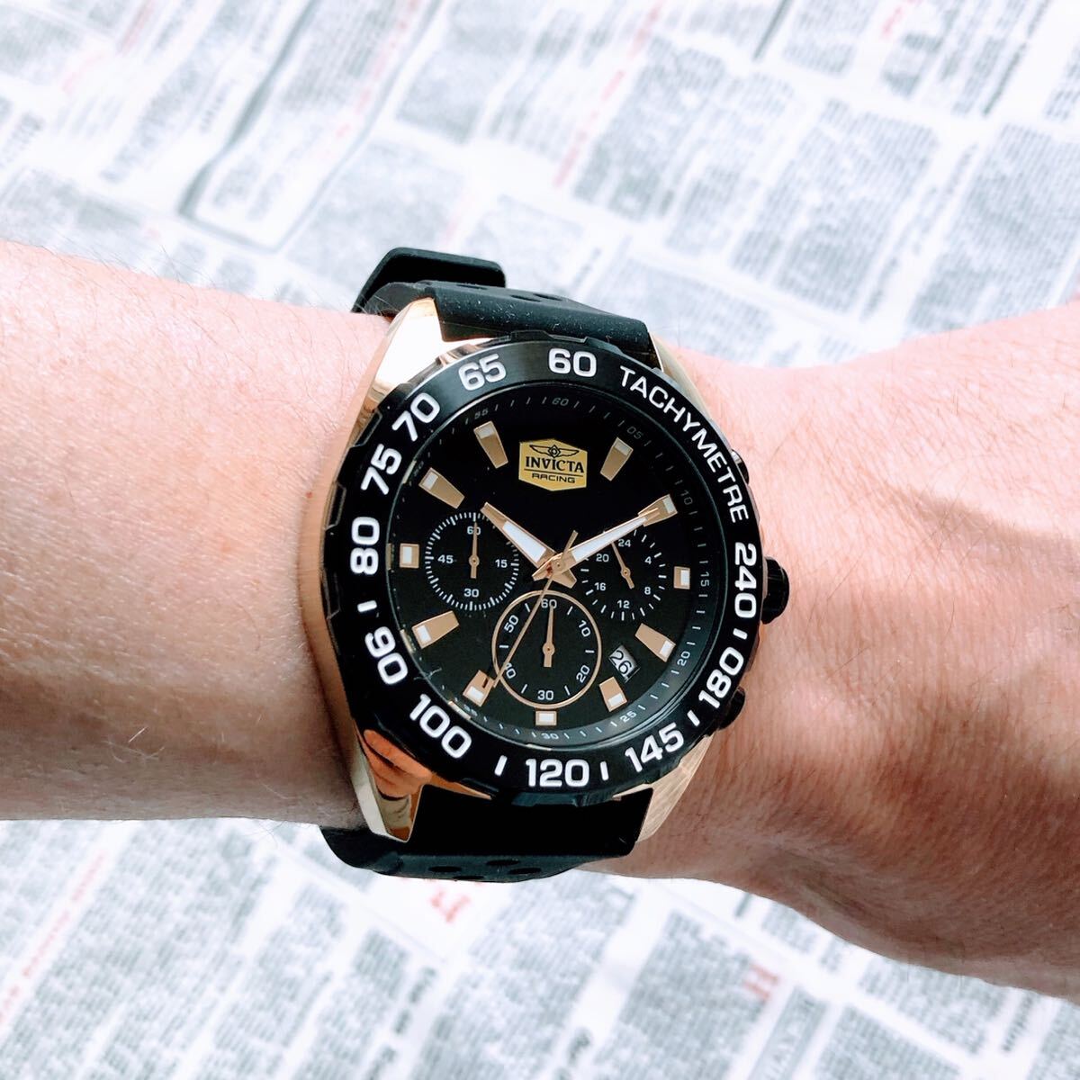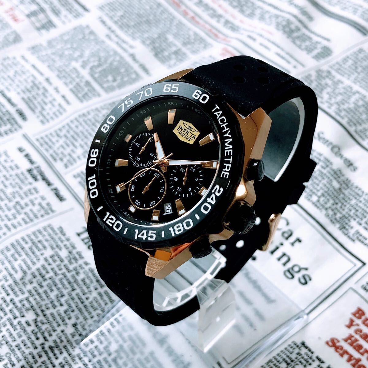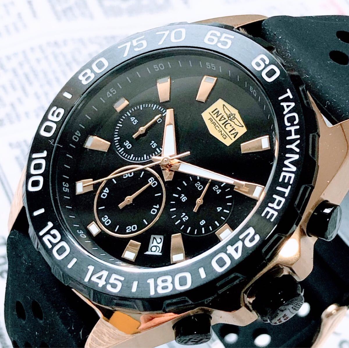 #3838【高級感お洒落】メンズ 腕時計 インビクタ Invicta クォーツ Quartz 動作良好 ブラックダイヤル インヴィクタ クロノグラフ 黒文字盤