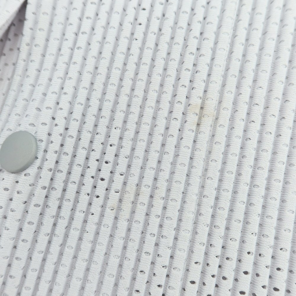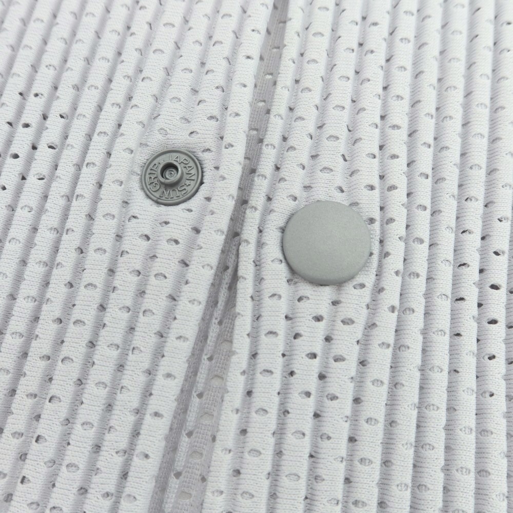 パンチング状の穴がスポーティーな雰囲気を演出した、2025年春夏のプリーツ加工ジャケットです。ワイド目のシルエットが今日的なリラックス感を演出しています。