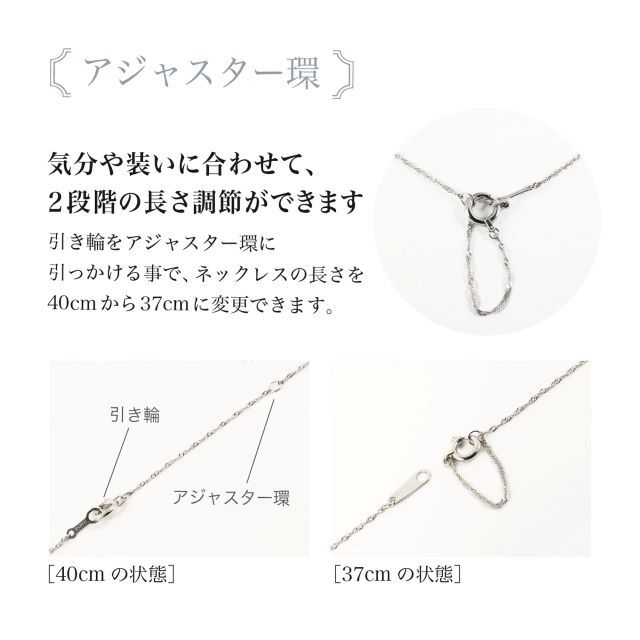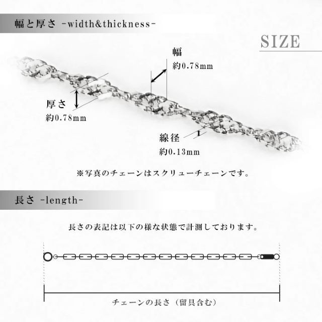 繊細で着ける角度によってキラキラ輝くプラチナスクリュータイプのネックレスチェーンは、幅広い用途に適しています。