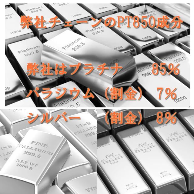 こちらのチェーンは、プラチナの割がねに、高騰著しいパラジウムを使用した安心の作り。