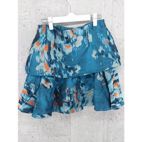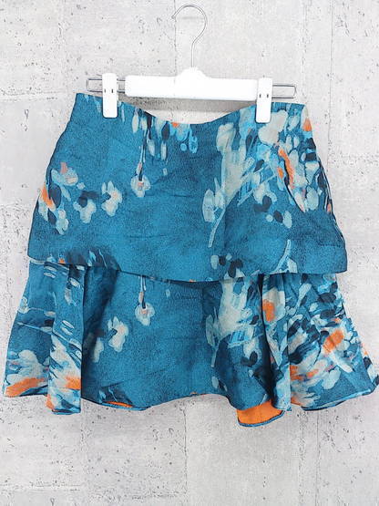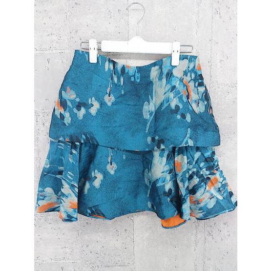◇ PHILOSOPHY フィロソフィ サイドジップ 総柄 ティアード ミニ フレア スカート I40 ブルー マルチ *