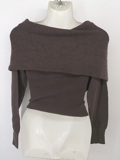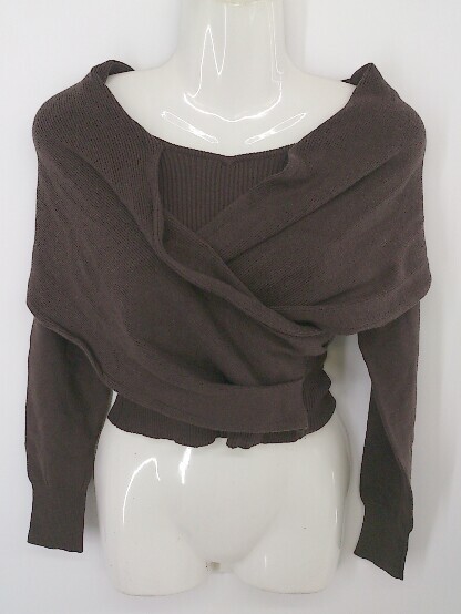 ◇ Aquagirl アクアガール クロス デザイン 長袖 ニット セーター サイズF ブラウン レディース E