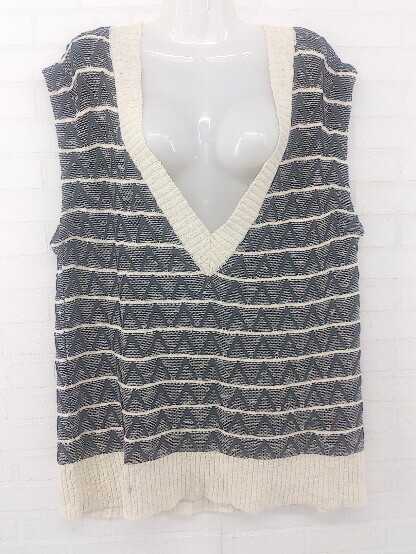 ◇ KBF URBAN RESEARCH 着回し 総柄 Vネック コットンニット 半袖 ベスト サイズOne ベージュ系 ブラック レディース E