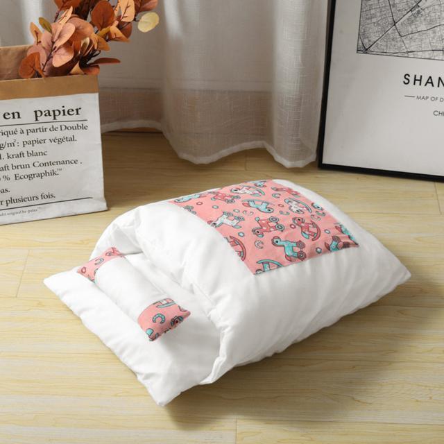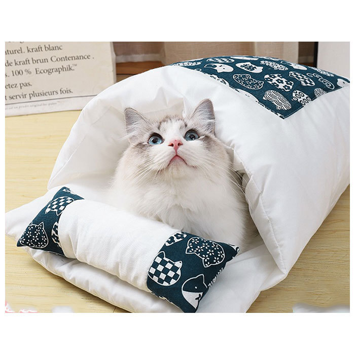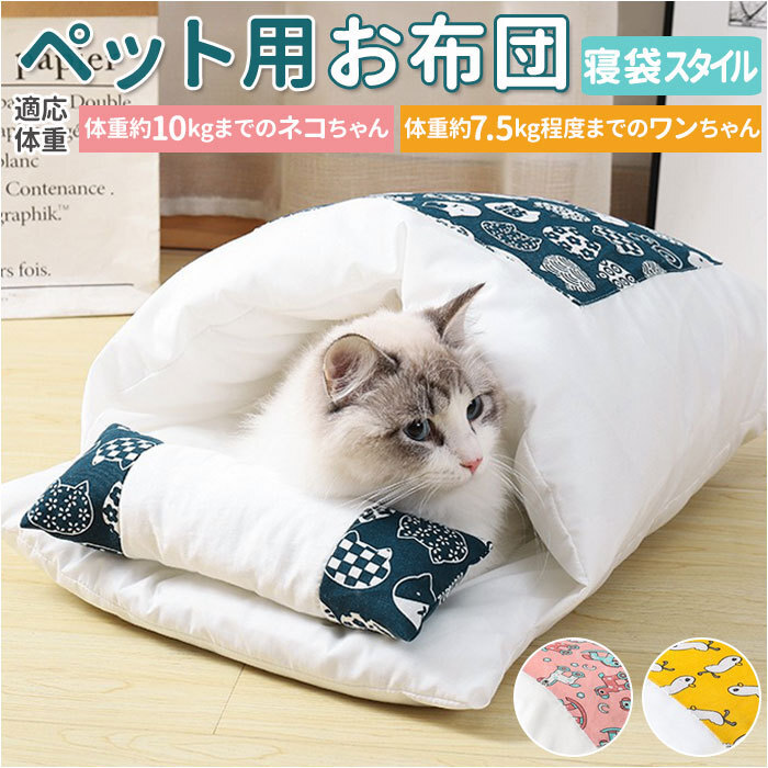 | 商品説明 | ・すっぽりもぐりこめば、ふかふか快適リラックス!ネコちゃん・ワンちゃん用のあったかお布団が新登場。 ・ネコちゃんの体を優しく包み込む、掛け布団・敷き布団が一体になった寝袋スタイルなので、冬の寒さが苦手なネコちゃんもポカポカと快適。 ・飼い主さんの腕でアゴ枕をするのが大好きなネコちゃんにぴったり!可愛いらしいミニ枕が付属。 ・お布団足元部分のファスナーから詰め物を取り出せば、こまめにお洗濯ができて、お手入れも楽ちん。 ・厚みのあるふかふか素材だから、中にもぐってお布団としてはもちろん、ちょこんと上に乗ってペット用クッションにしてもOK! ・ネコちゃんだけでなく、小型のワンちゃんやフェレットなどの小動物用のお布団にも最適。(※体重約10kgまでのネコちゃん、7.5kg程度までの小型のワンちゃんの使用に適しています。) |