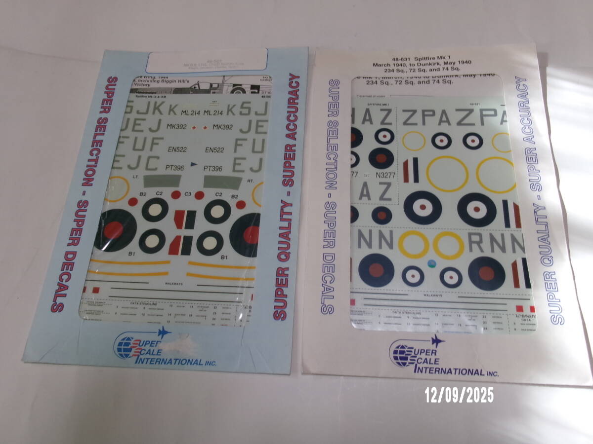 コレクション整理です。古いスーパースケールデカール1/48 スピットファイアの2点です。どちらも開封済です。お探しのお方にお勧めです。
