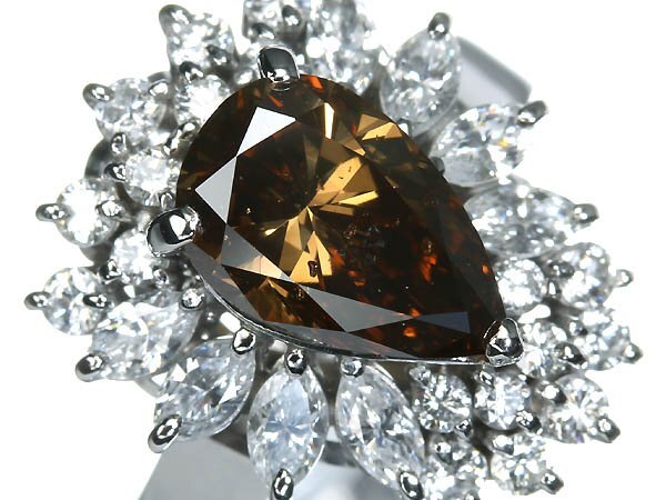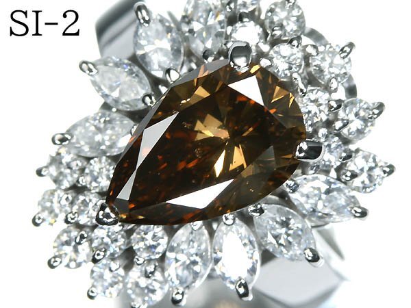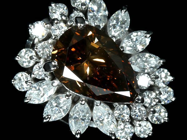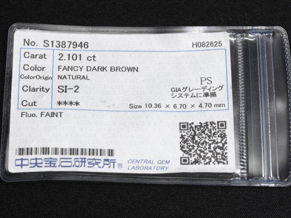 ●クラリティ:SI-2 ●カラー:FANCY DARK BROWN ●カット:Pear Shape Cut ●2.101ct 【ct数の刻印あり】 ◆脇石 天然ダイヤモンド ●総計0.921ct 【ct数の刻印あり】 ◆付属品【中央宝石研究所】発行ソーティング】 |