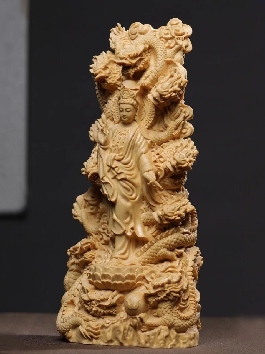 木彫仏像 仏教美術 精密細工 九龍観音像 木彫り 桧木製 観音菩薩像 仏像 置物 高さ18cm