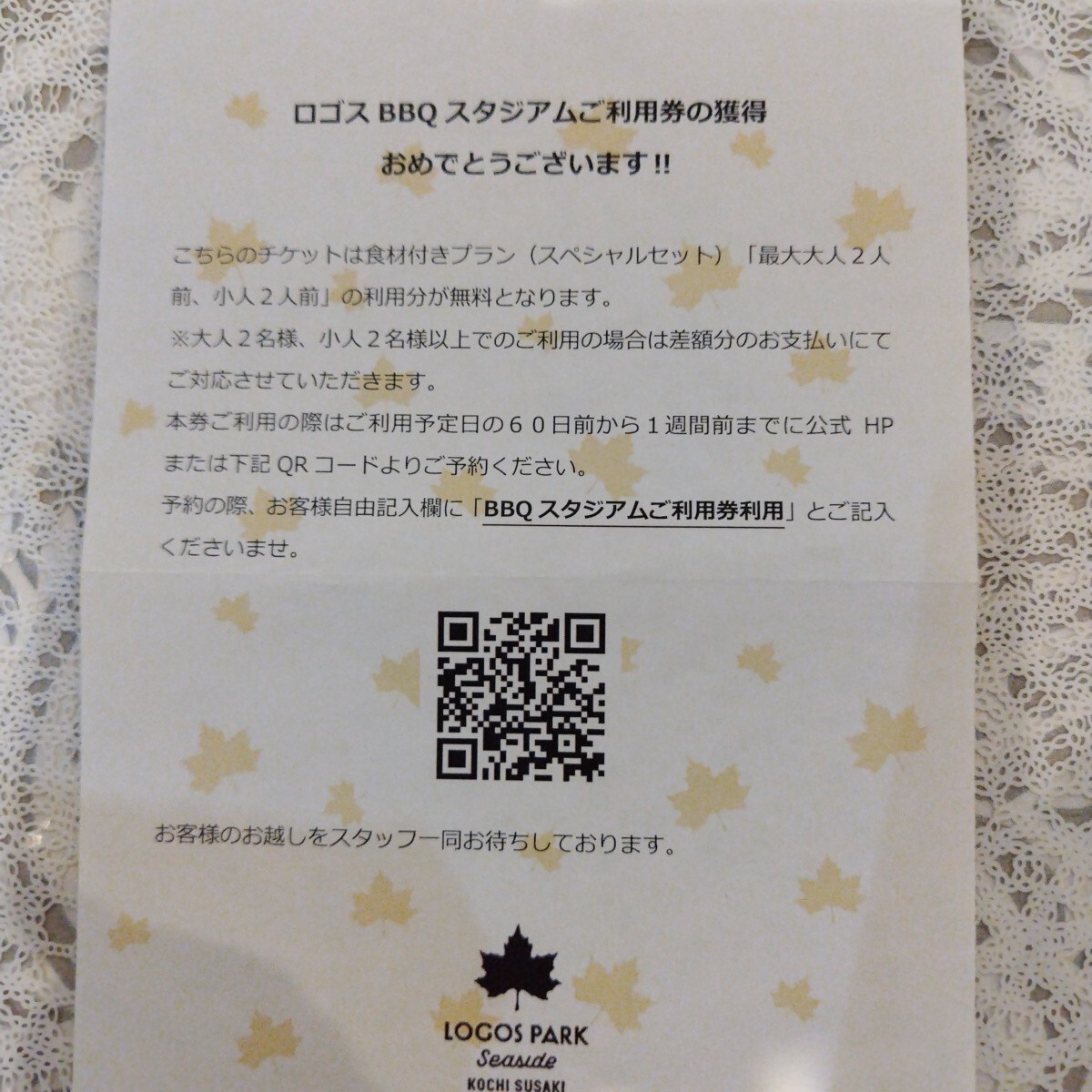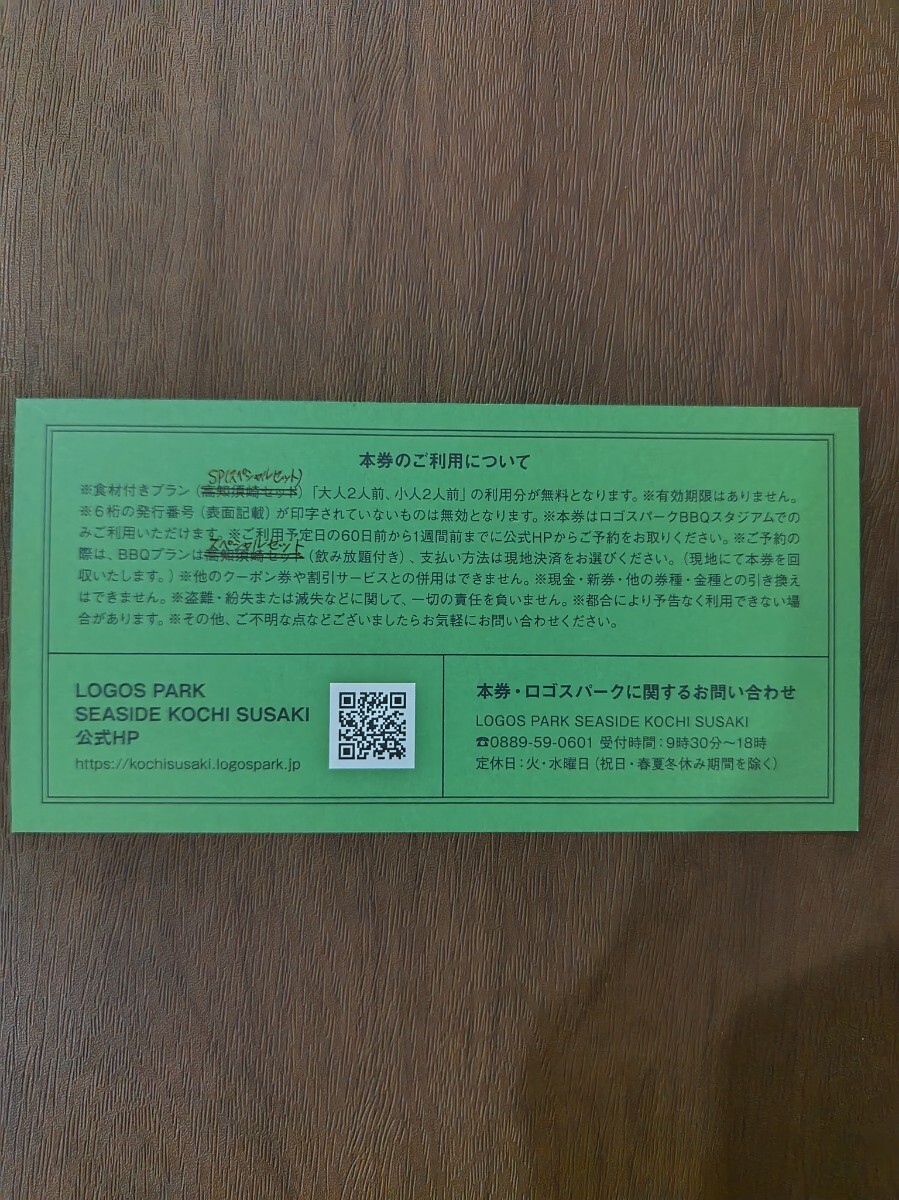 こちらのチケットは食材付きプラン(スペシャルセット)飲み放題、最大大人2人前+子供2人前様の利用分が無料となります。詳しくはLOGOS PARK SEASIDE KOCHI SUSAKI公式サイトにてご確認ください。