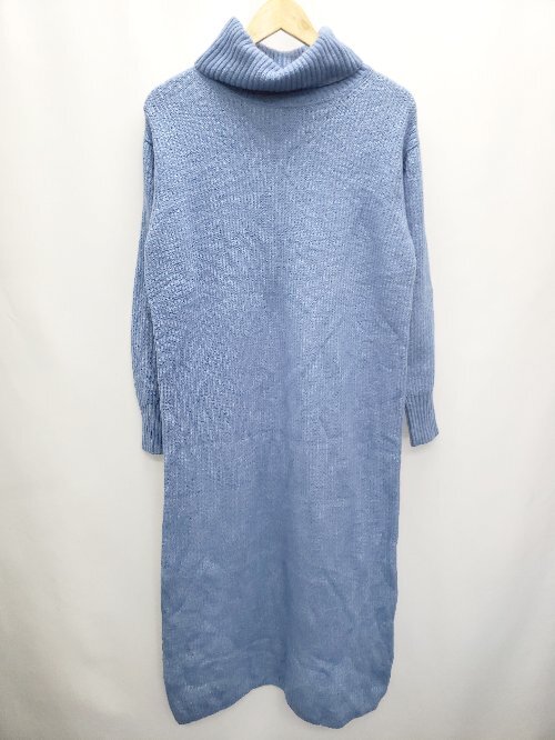 ◇ NATURAL BEAUTY BASIC ウール混 長袖 膝下丈 ワンピース サイズM ブルー レディース P