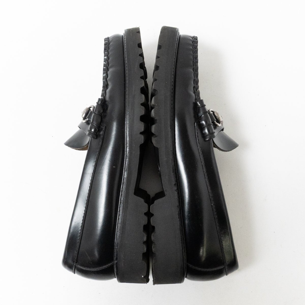 | 状態 | D 履きジワ、レザー汚れ・擦れ傷、ビット擦れ傷・汚れ、甲裏とインナーヒールにベタつきあり(後付けクッション剥がし後)、インナー・インソール汚れ・擦れ、ソール汚れ・擦り減り、全体的に汚れと使用感あります。 |