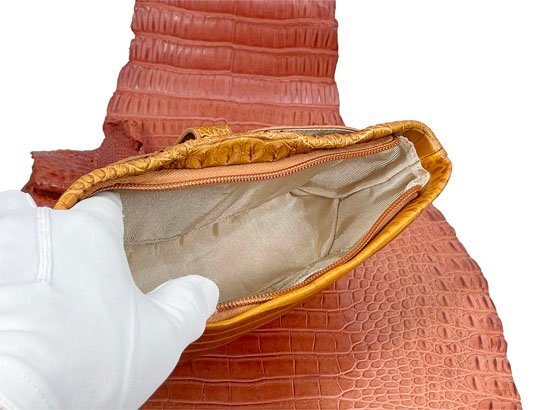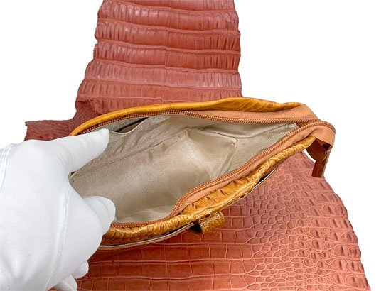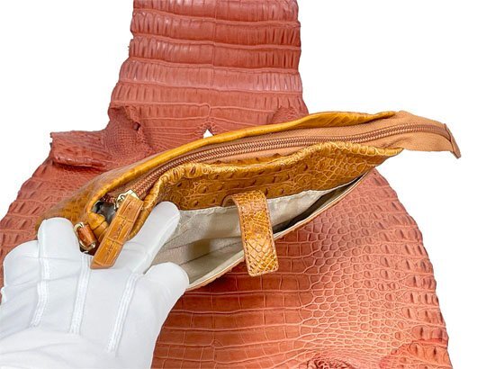 | ◆素材 | 外側:クロコダイル(背部革)・牛革(クロコダイル型押し) 内側:生地 ショルダー紐:表-牛革(クロコダイル型押し)・裏(牛革) |