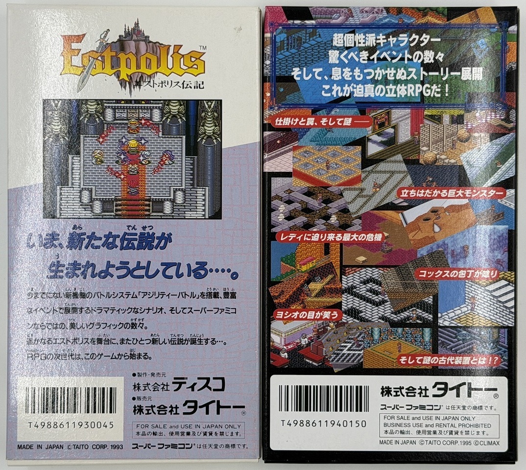 TAITO/ タイトー Estpolis エストポリス伝記/ LADY STALKER レディストーカー ~過去からの挑戦~ SFCカセット2種SET 箱付き中古