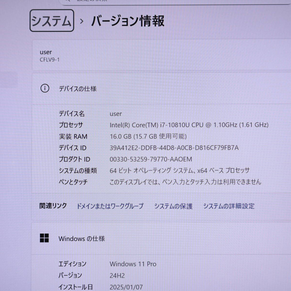 ★完動品 最上級10世代i7!M.2 NVMeSSD512GB メモリ16GB★CF-LV9 Core i7-10810U Webカメラ TypeC LTE Win11 MS Office2019 H&B★P93459