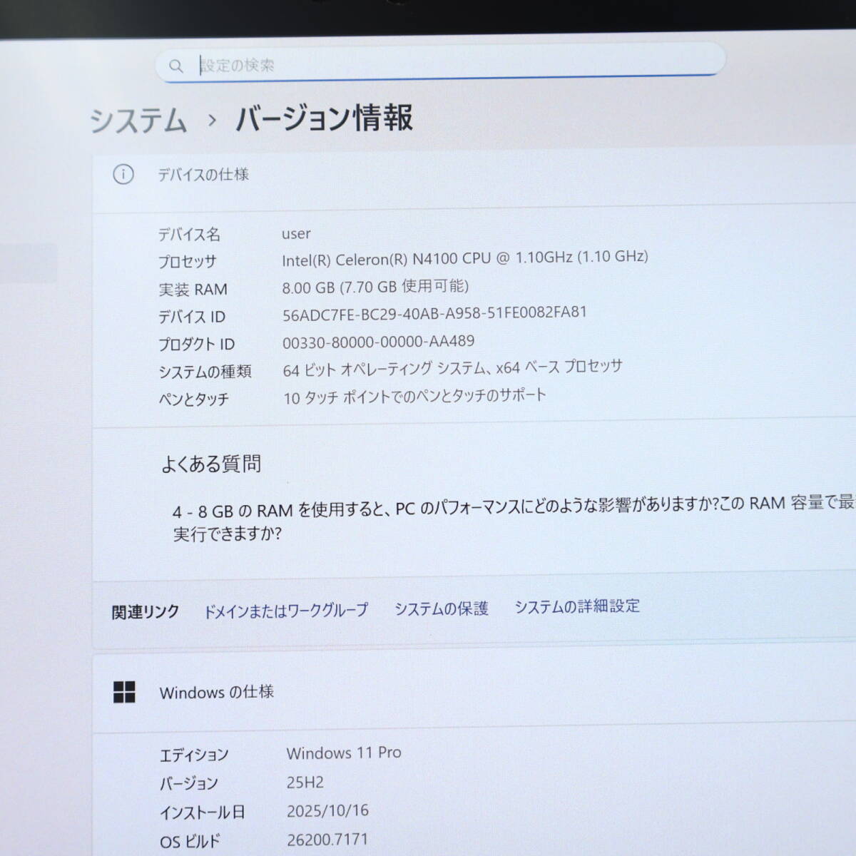 ★防水★美品 SSD128GB メモリ8GB★Q509/VE Webカメラ TypeC 高解像度 Celeron N4100 Win11 MS Office 中古品 ノートパソコン★P94960
