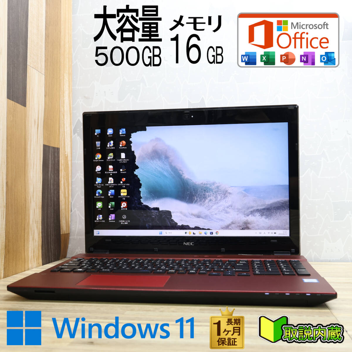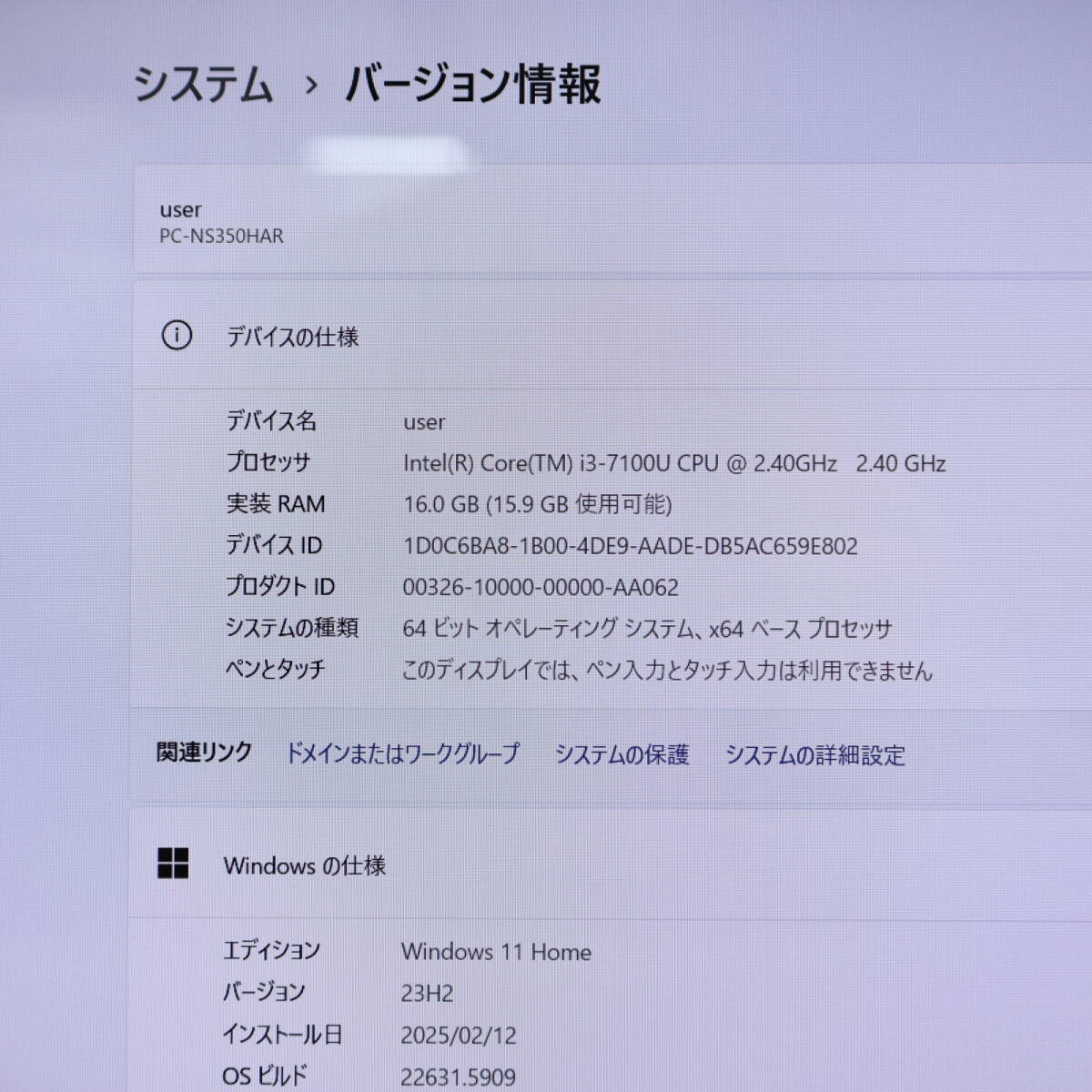 ★超美品 高性能7世代i3!大容量500GB メモリ16GB★NS350H Core i3-7100U Webカメラ Win11 MS Office2019 H&B ノートパソコン★P93148