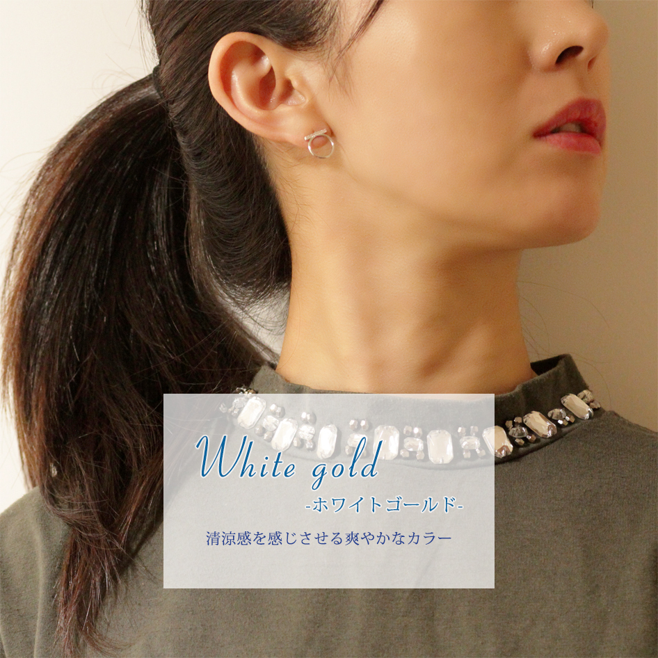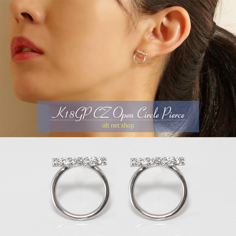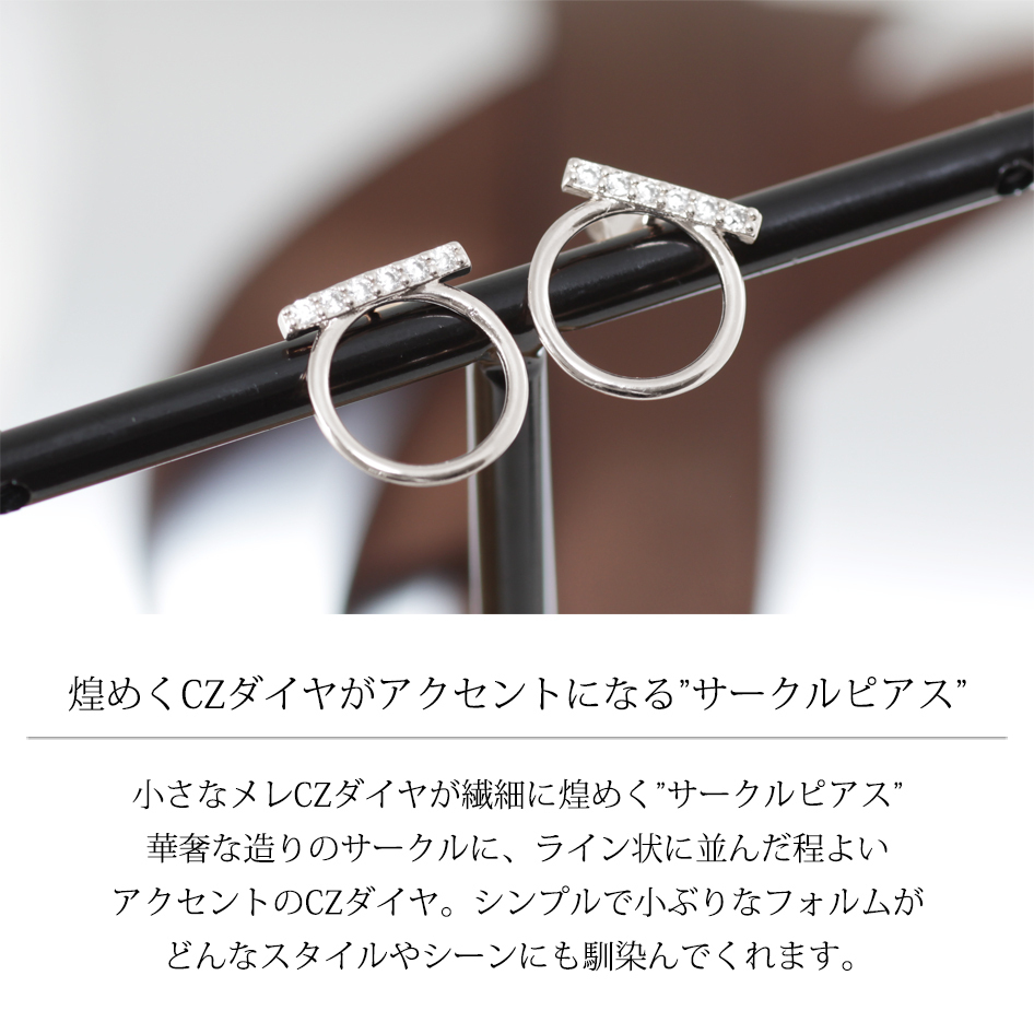 新品/ピアス/K18GP/サークル/ライン/バー/小さめ/シルバー/18金/ホワイトゴールド/レディース/両耳/シンプル/円/丸/ダイヤ/CZ/WG