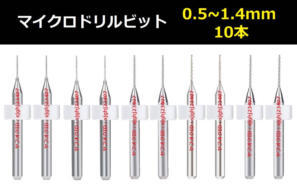 ・ドリルの刃径: 0 .5 mm 0 .6 mm 0 .7 mm 0 .8 mm 0 .9 mm 1 .0 mm 1 .1 mm 1 .2 mm 1 .3 mm 1 .4 mm 各 1 本計 1 0 本 セット