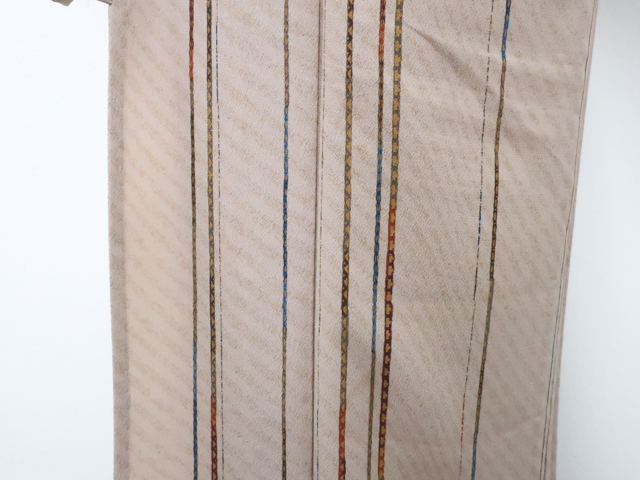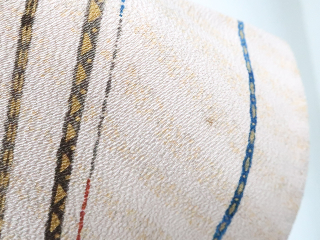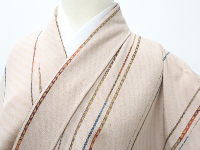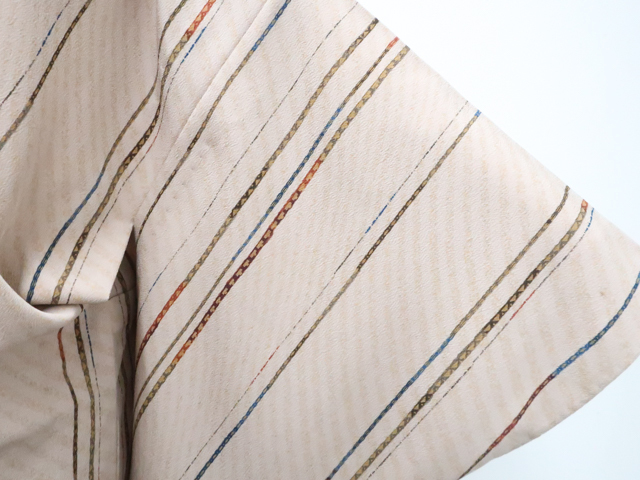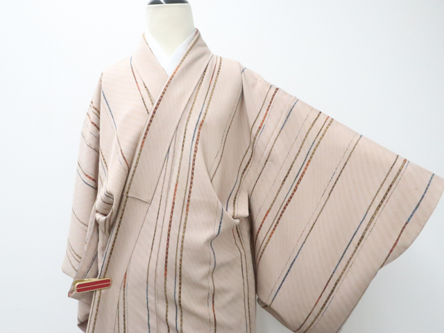 リサイクル商品のため、衿折れ山や衿裏に汚れ、表の所々に薄汚れがございますが着用可能なお品です。 地色は薄茶です。 1枚目の画像が近いお色かと思われます。 素材は正絹です。 |