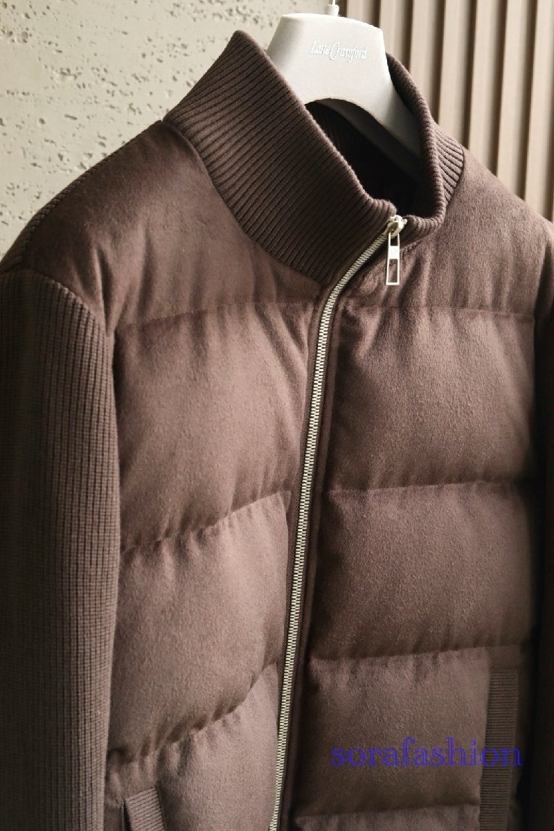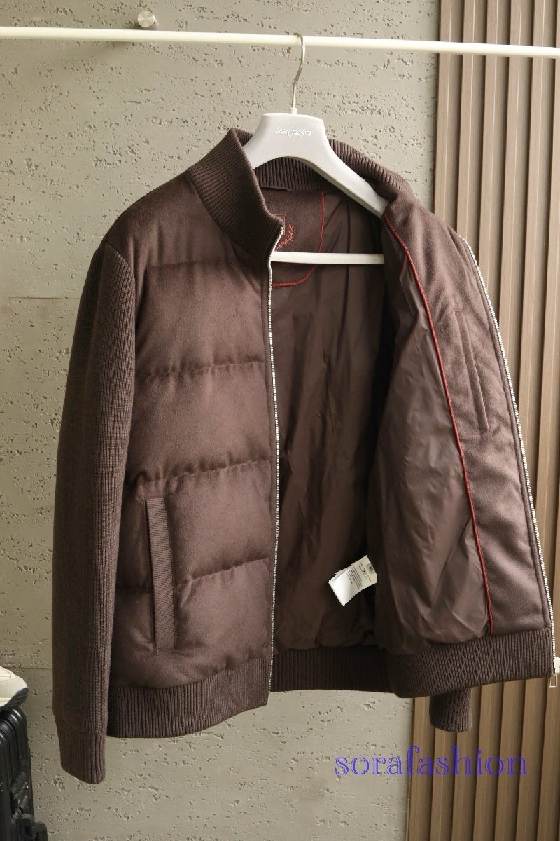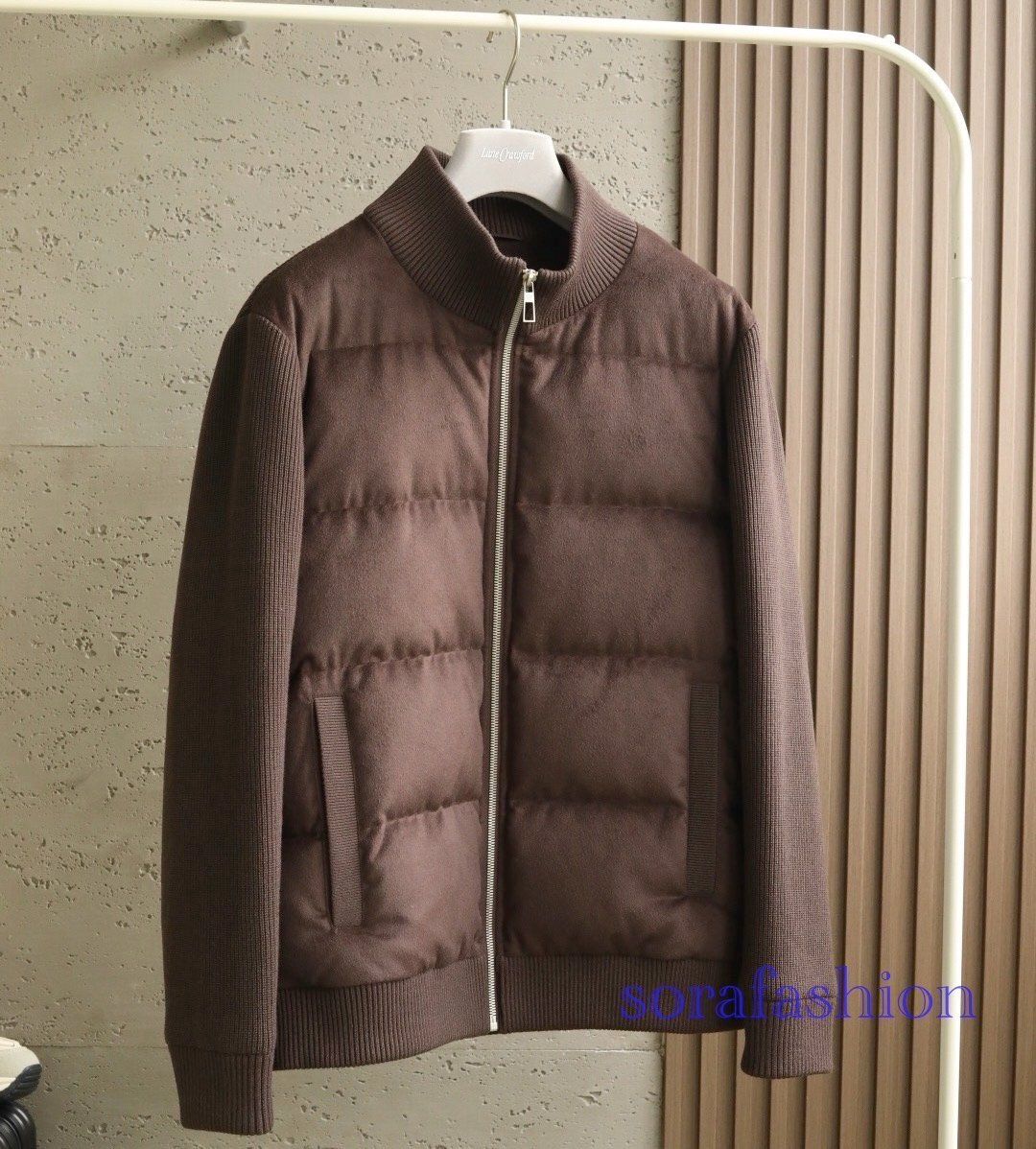Loro Piana ロロピアーナ メンズジャケット ニットセーター パーカー ブルゾン ジップアップ アウトドア カジュアル トップス イタリア 長袖 スカジャン アウター ジャンパー コート ファッション 父の日 紳士服 秋冬物 防風防寒 ニット切替 90/10ダックダウン入り