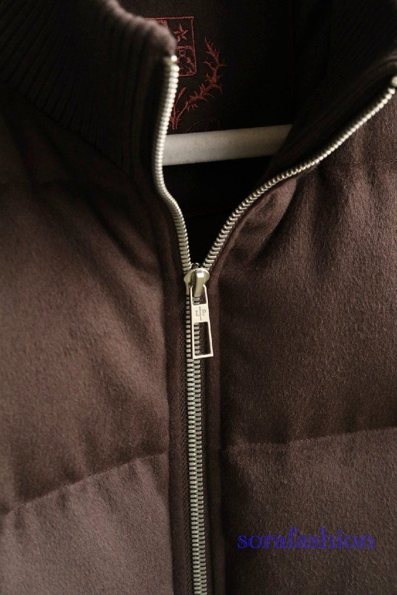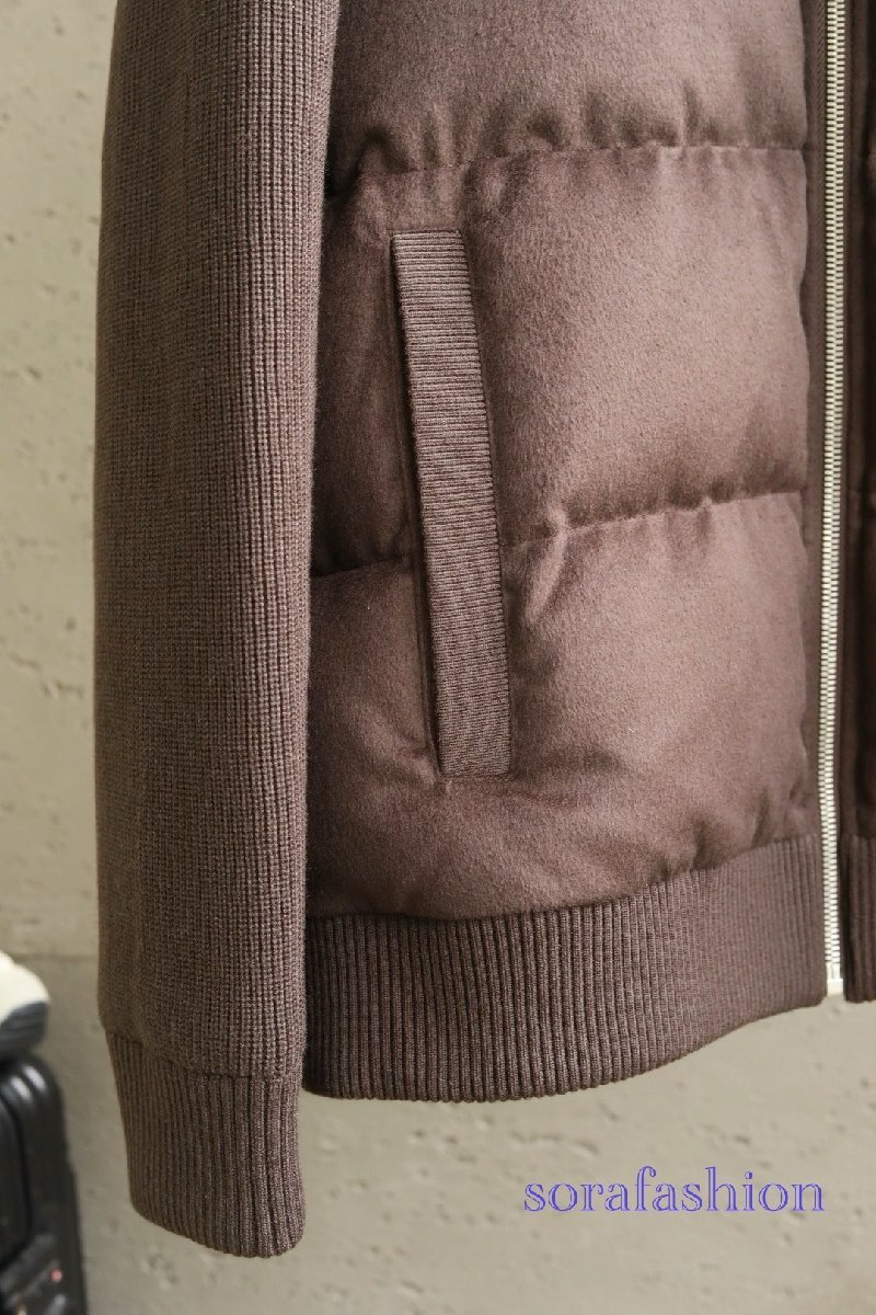 Loro Piana ロロピアーナ メンズダウンジャケット ブルゾン コーヒー Lサイズ ニット切替 スカジャン アウター ジャンパー ウール コート