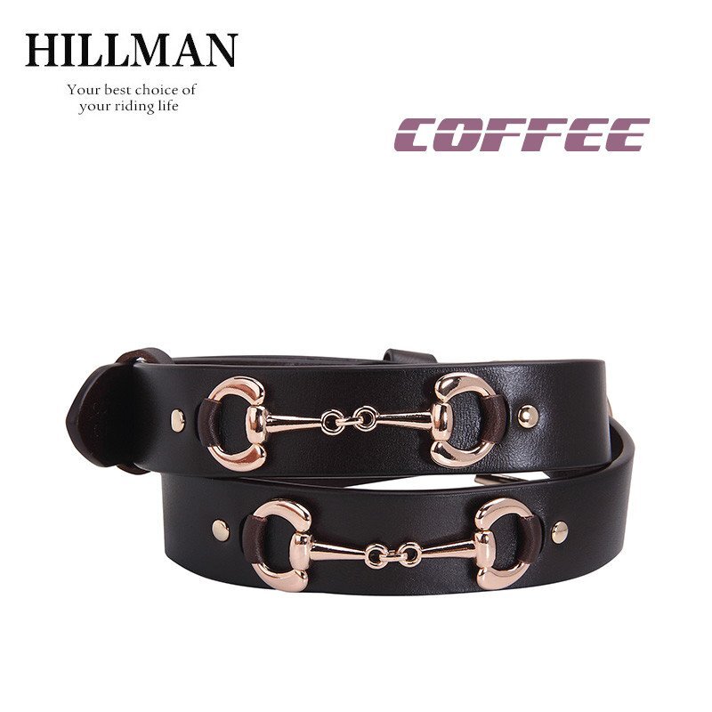 【商品特徴】◇(BLACK,COFFEE)真鍮の3つのハミがデザインされた、本革ベルト。◇着脱しやすい柔らかなレザーでできています本格的な乗馬ベルト。◇幅はベルトループに通しやすい27mm程度。◇7つ穴タイプで、留める穴の位置により前後6cmほど調整できます【スペック】■ブランド HILLMAN■対象 男女兼用/ジュニア ■素材 本革/牛革■シーズン オールシーズン