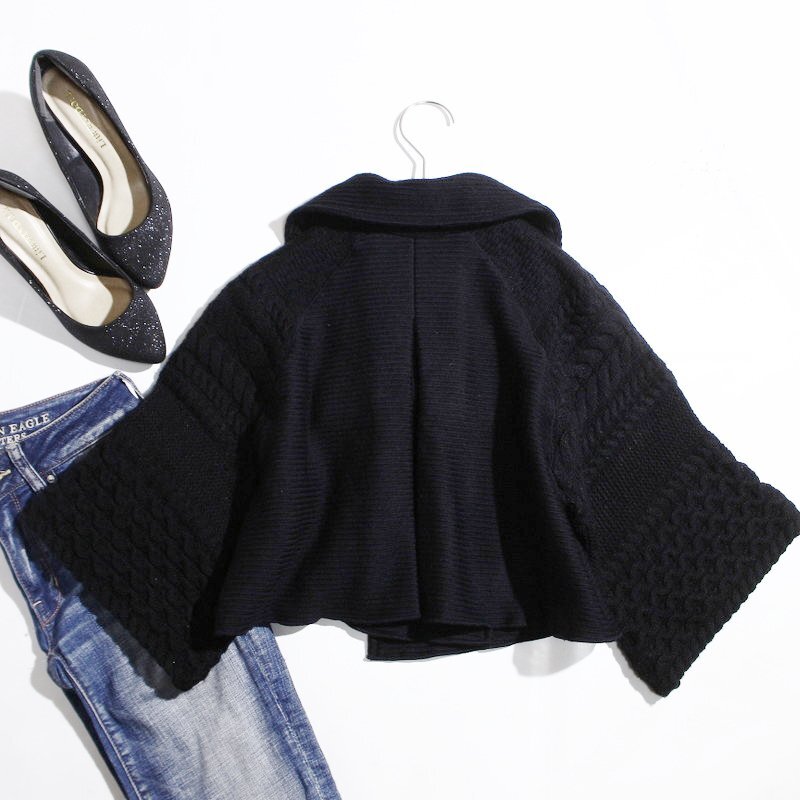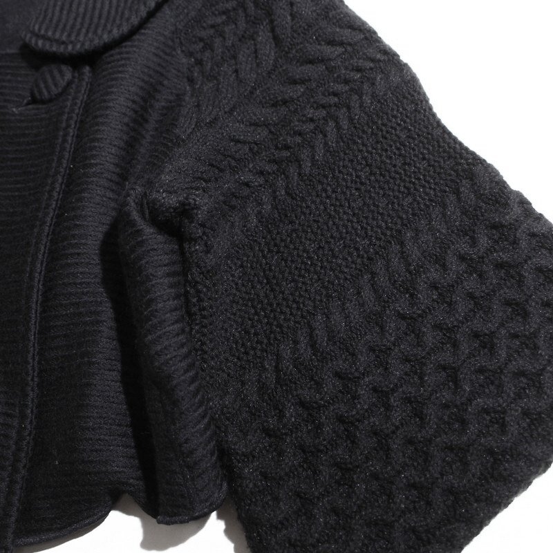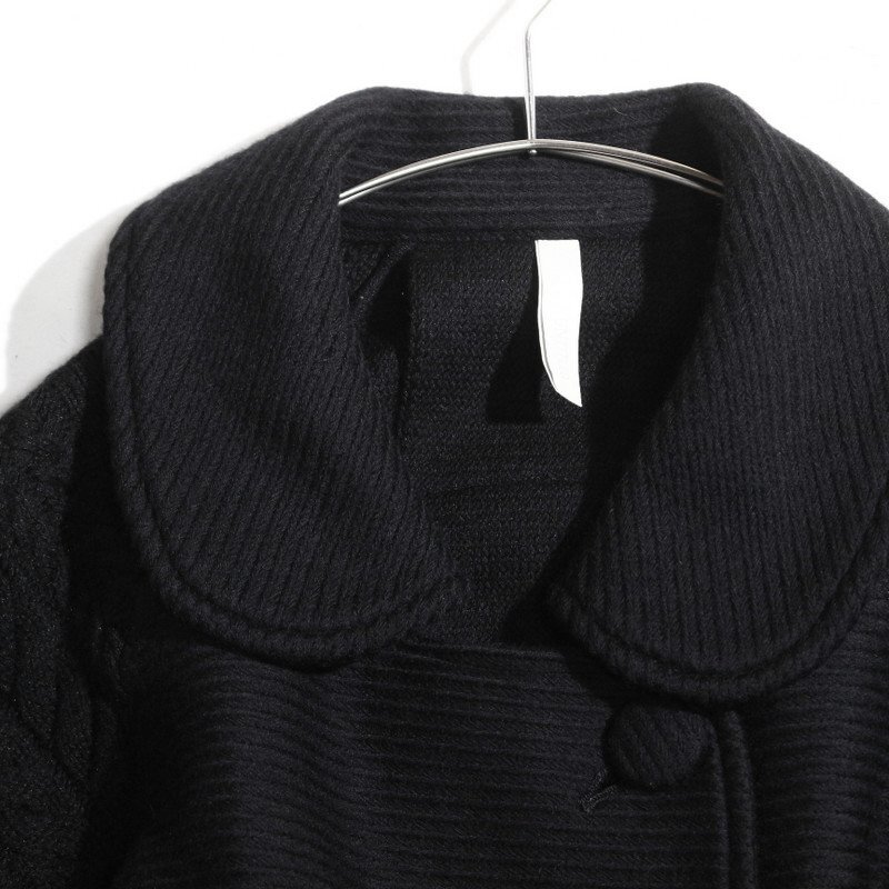 美品 UNTITLED アンタイトル 株) ワールド 秋 冬 飾編み ニット ショートコート ビッグカラー Aライン ブラック 黒 0 オフィス 羽織り 通勤