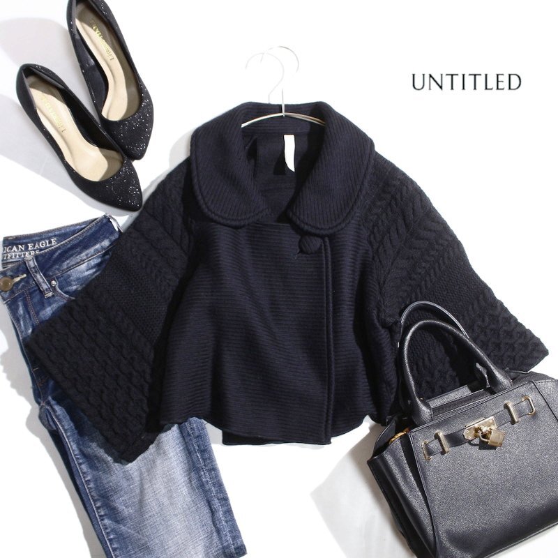 UNTITLED(アンタイトル)の軽く羽織れるショートコートです。ウール混紡素材を使用したしっかりとした生地感で、暖かく着用いただけます。袖を通すタイプで動きやすく、美しいAラインのシルエットが特徴で、上品でエレガントな印象を与えます。 ショート丈なので様々なボトムスとバランス良く合わせられます。通勤・通学からカジュアルなお出かけ、フォーマルなシーンまで、幅広くご活用いただけます。