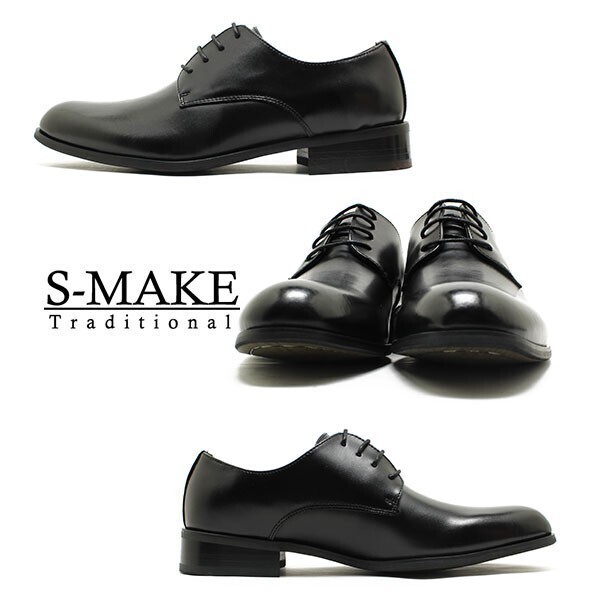 箱付き新品★日本製x本革/S-MAKE★プレーントゥ/ビジネスシューズ【27.5/EEE/黒】歩きやすい!名ブランド品質◆n7319