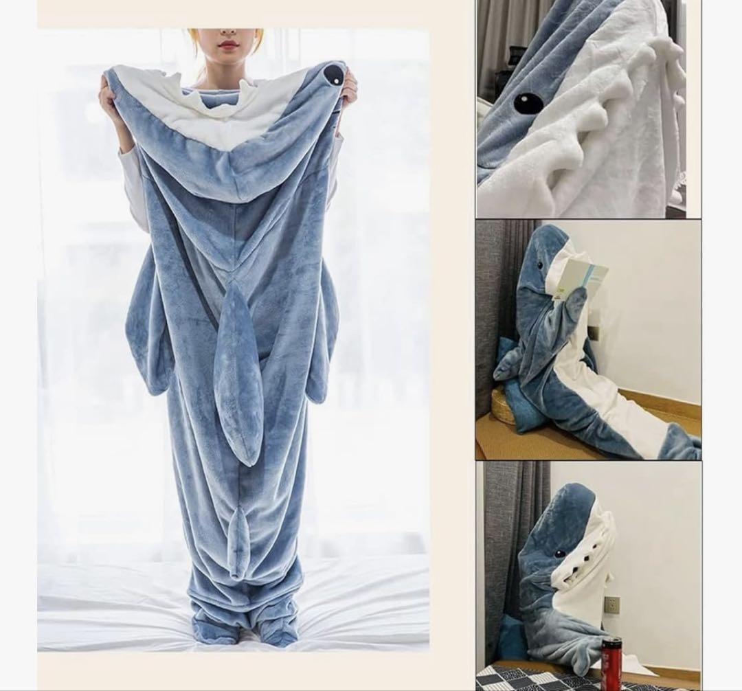 「サメのフランネルパジャマ」 着用可能なサメ毛布は、サメの口から着用され、ユニークなサメの形は非常にかわいいです、ぬいぐるみのサメのようにソファに横たわって、尾の分割設計は、利便性を考慮して、自由に歩くことができます