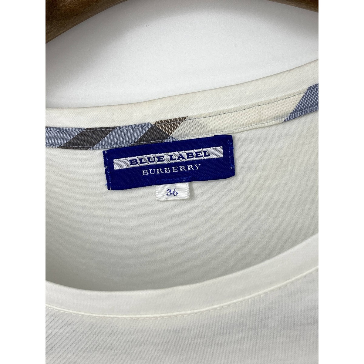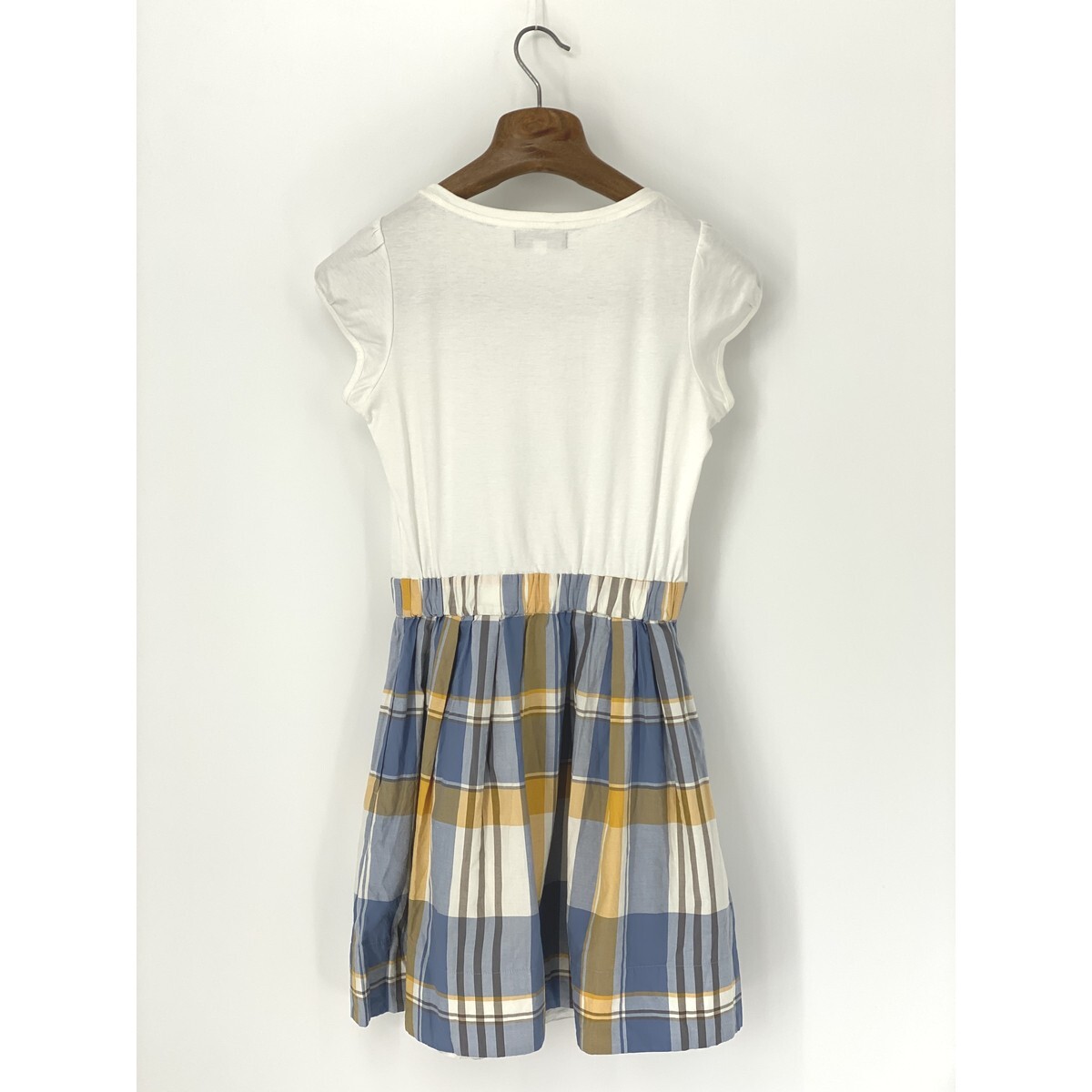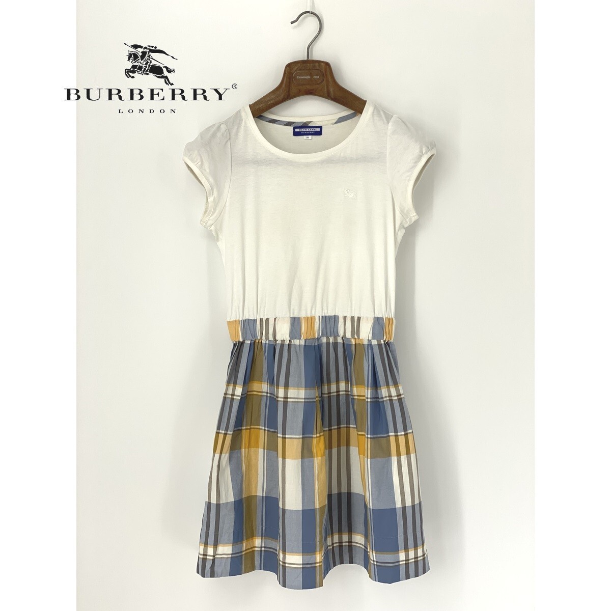 A8342/美品 春夏 BURBERRY BLUE LABEL バーバリーブルーレーベル チェック コットン 半袖 膝丈 フレア ワンピース 36 M程 白/レディース