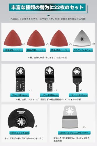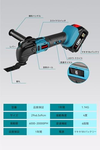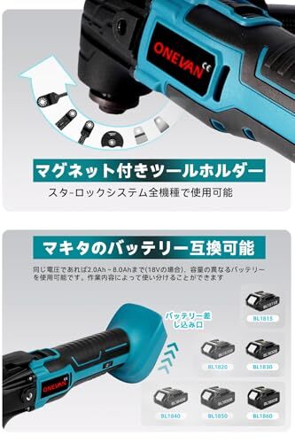 ONEVAN 充電式マルチツール 18V コードレス マキタ の18V バッテリー互換可能 無段変速ダイヤ・LEDライド付き 電動