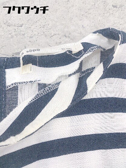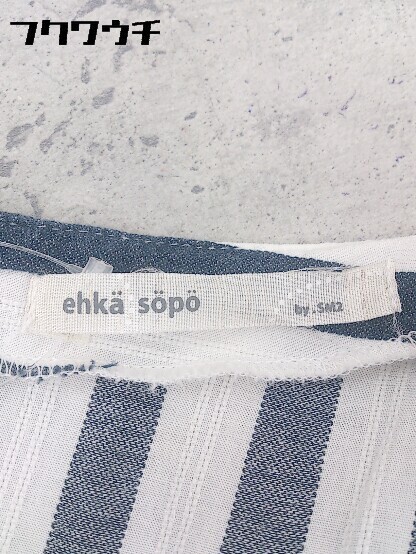 ◇ ehka sopo エヘカ ソポ SM2 ストライプ フレンチスリーブ 膝丈 ワンピース サイズM ホワイト ネイビー レディース