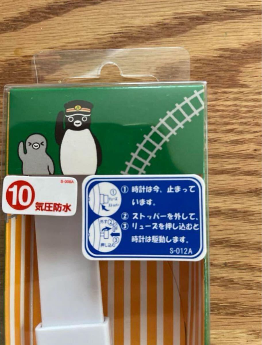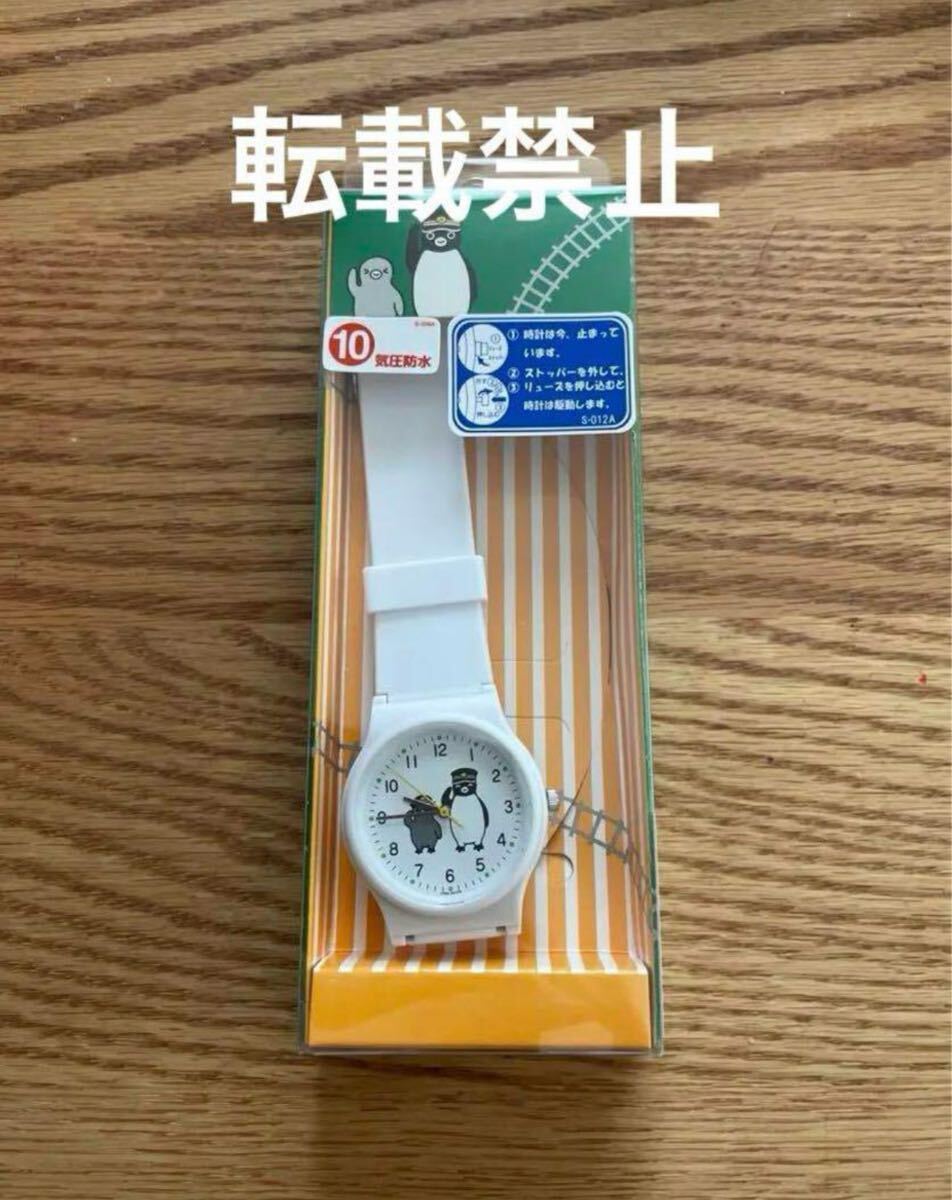 絵柄は電車好きな方にもおすすめな駅員さんペンギンで、バンドや時計部分の清々しい白がシンプルでおしゃれです。バンドの端にいるペンギンがポイント。
