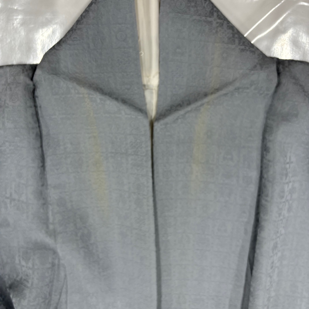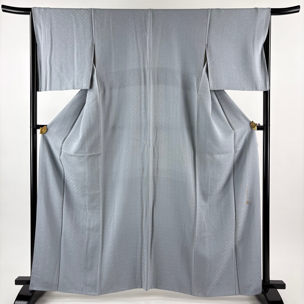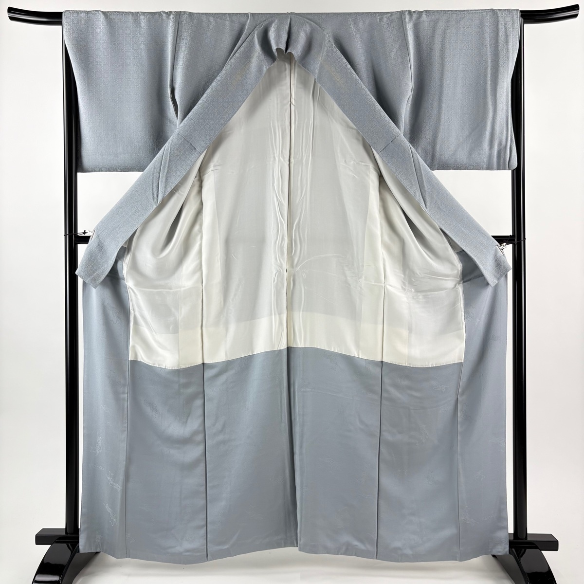 | 色無地 秀品 千地泰弘 落款 地紋 青灰色 袷 身丈162.5 裄丈66 M 正絹 【中古】 |