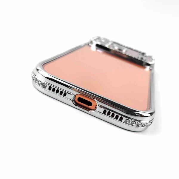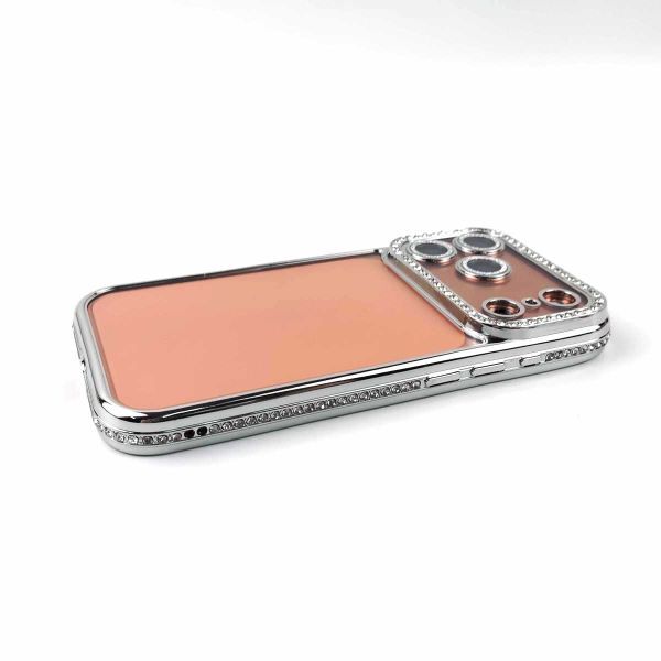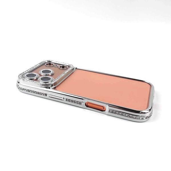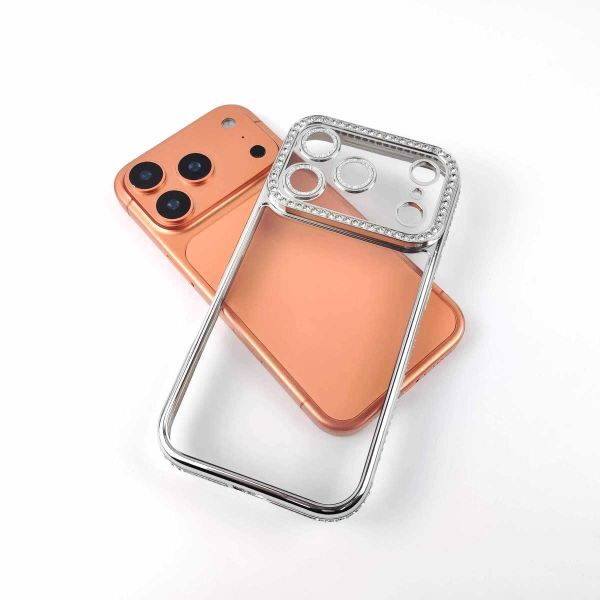 iPhone 17 Pro用 保護ケース カバー キラキラ ラインストーン ゴージャス レンズ保護 ソフトケース シルバー